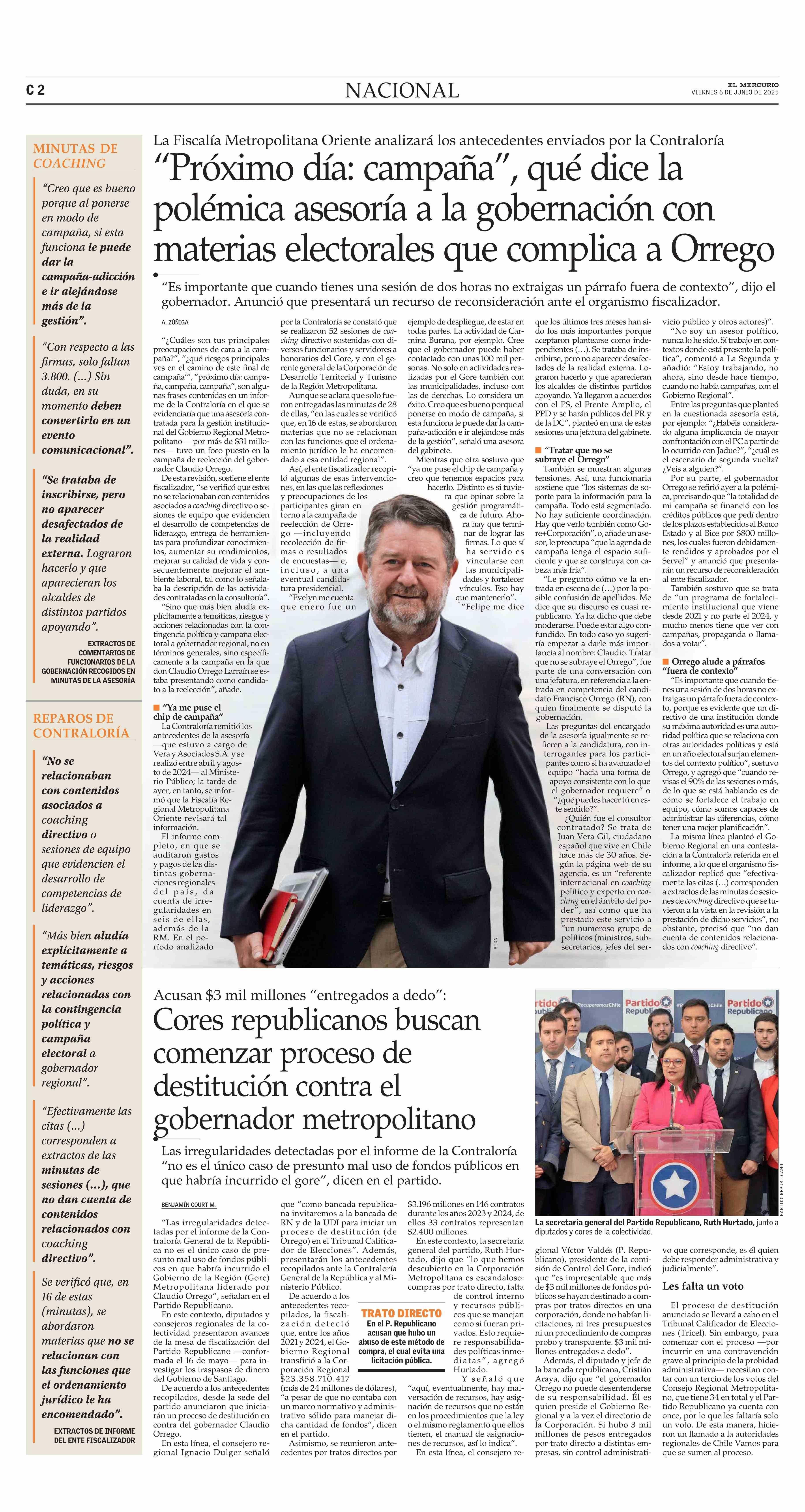 "Próximo día: campaña", qué dice la polémica asesoría a la gobernación con materias electorales que complica a Orrego 06-06-2025 El Mercurio |