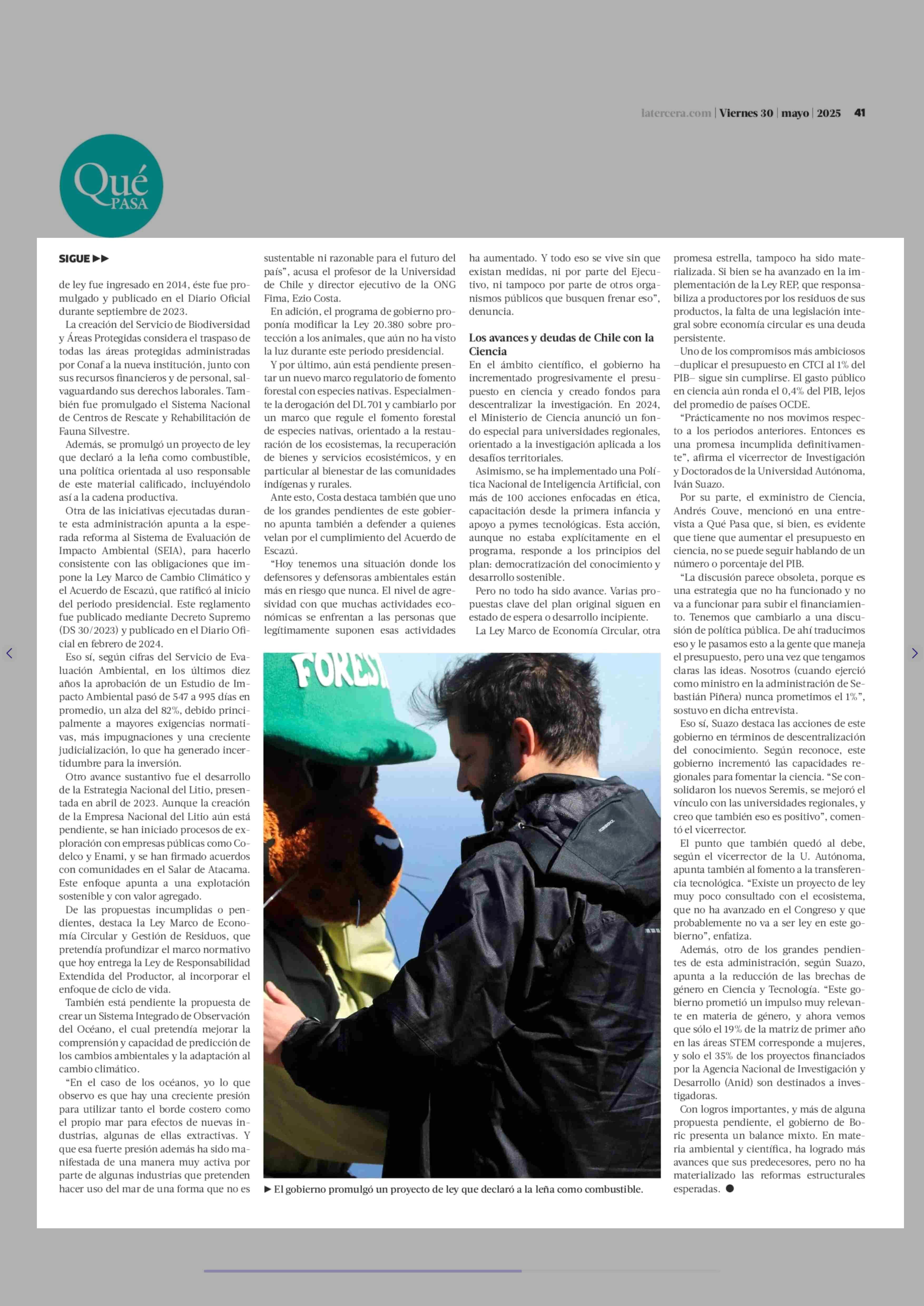 Balance científico y ambiental del programa de Boric: cuánto se ha cumplido sobre un Chile verde e innovador 30-05-2025 La Tercera |