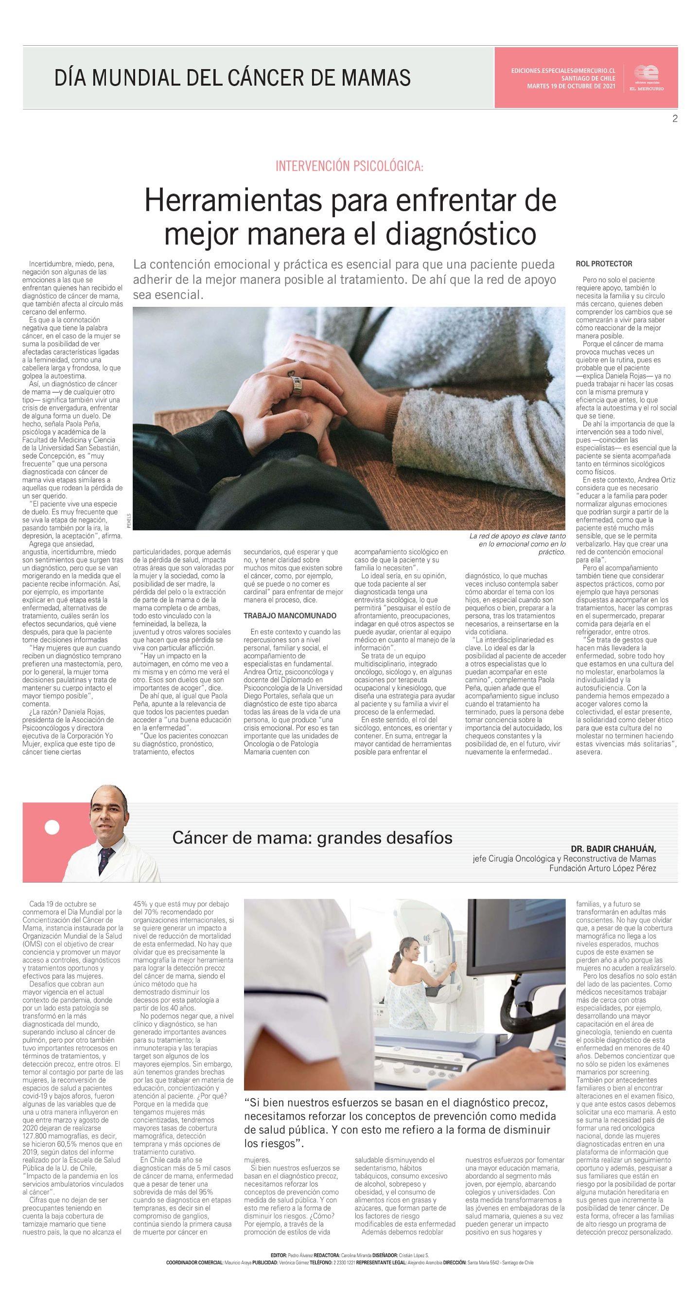 Herramientas para enfrentar de mejor manera el diagnóstico 19-10-2021 El Mercurio |