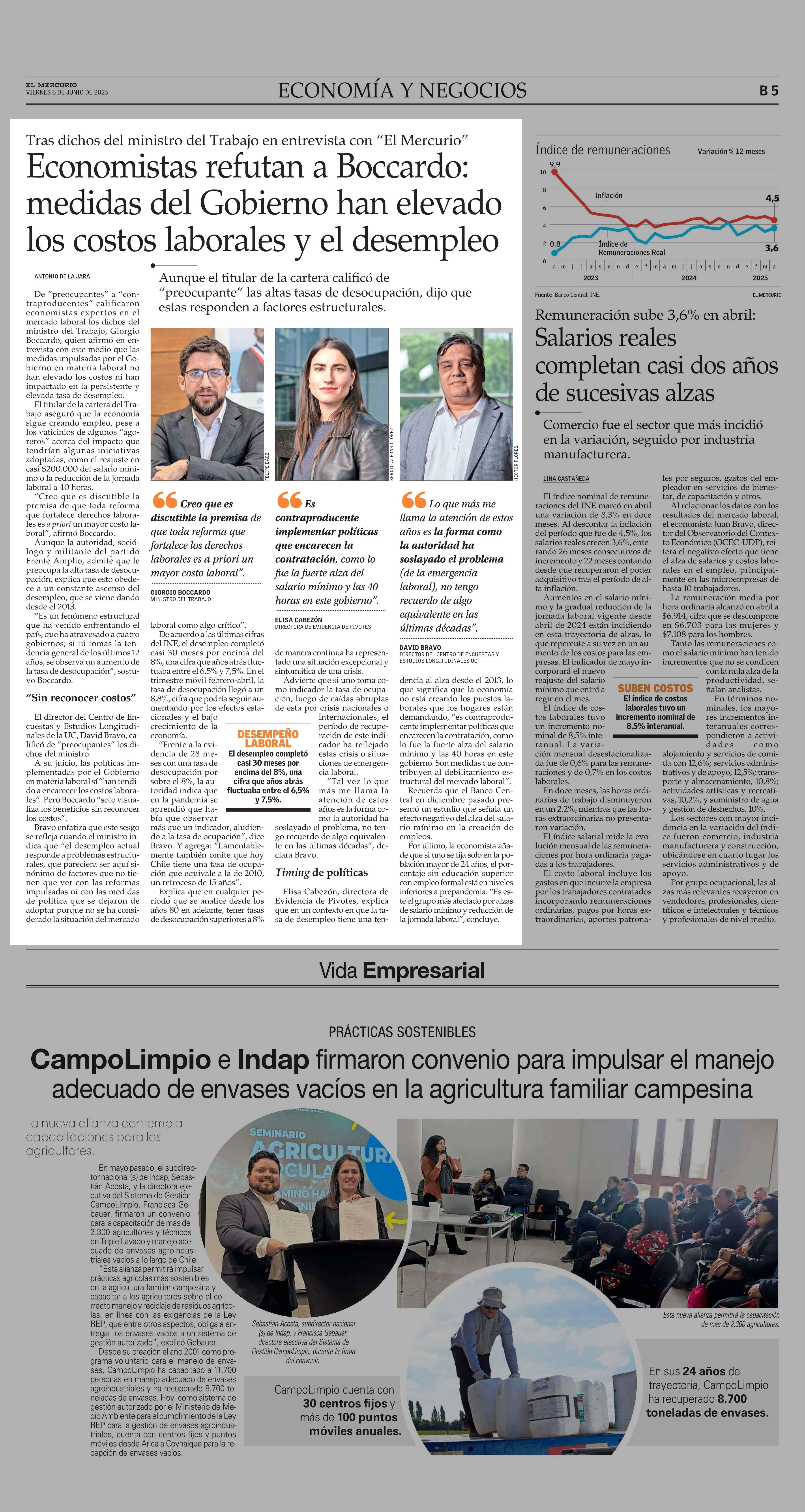 Economistas refutan a Boccardo: medidas del Gobierno han elevado los costos laborales y el desempleo 06-06-2025 El Mercurio |