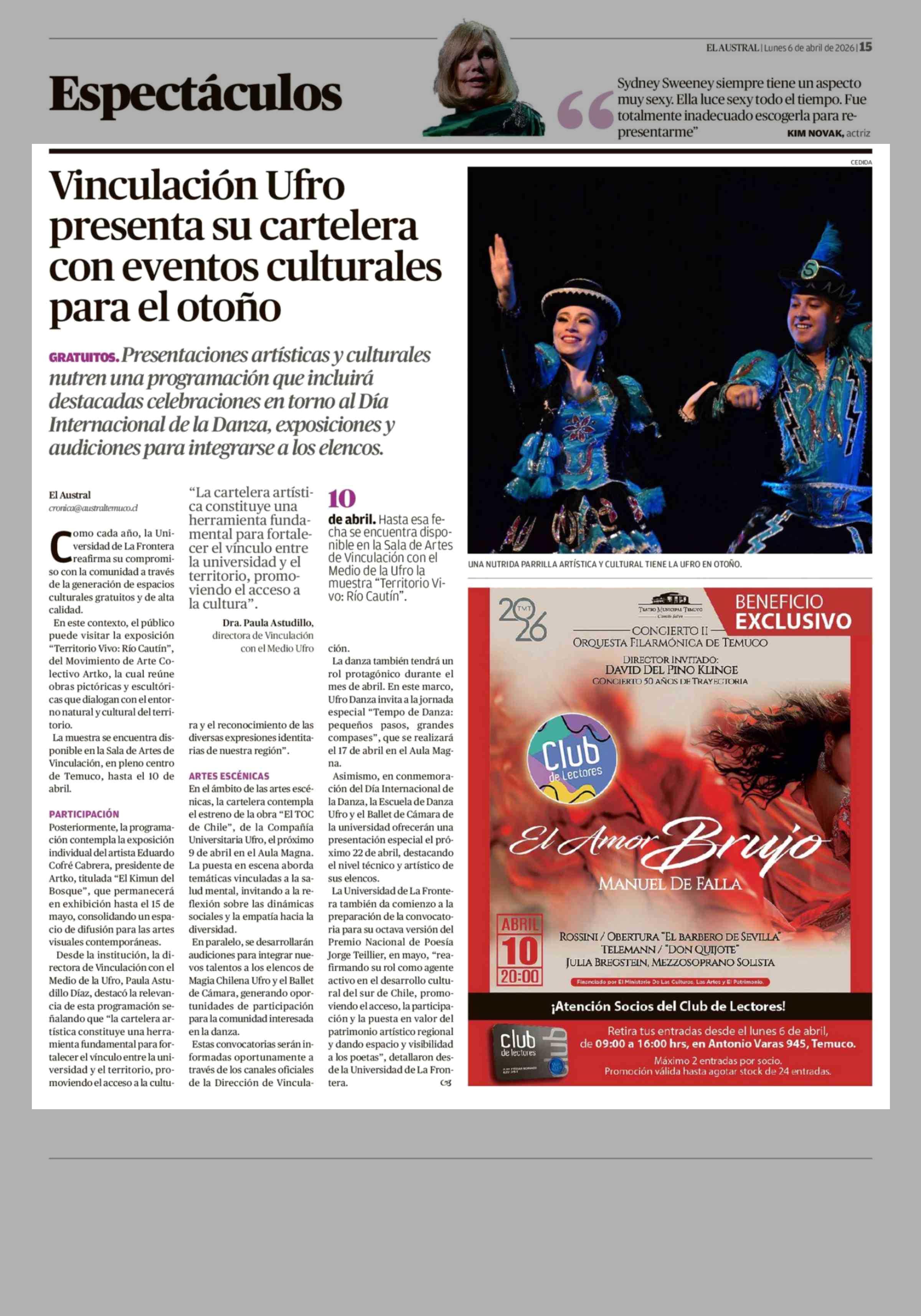 Vinculación Ufro presenta su cartelera con eventos culturales para el otoño 06-04-2026 El Austral de la Araucanía |