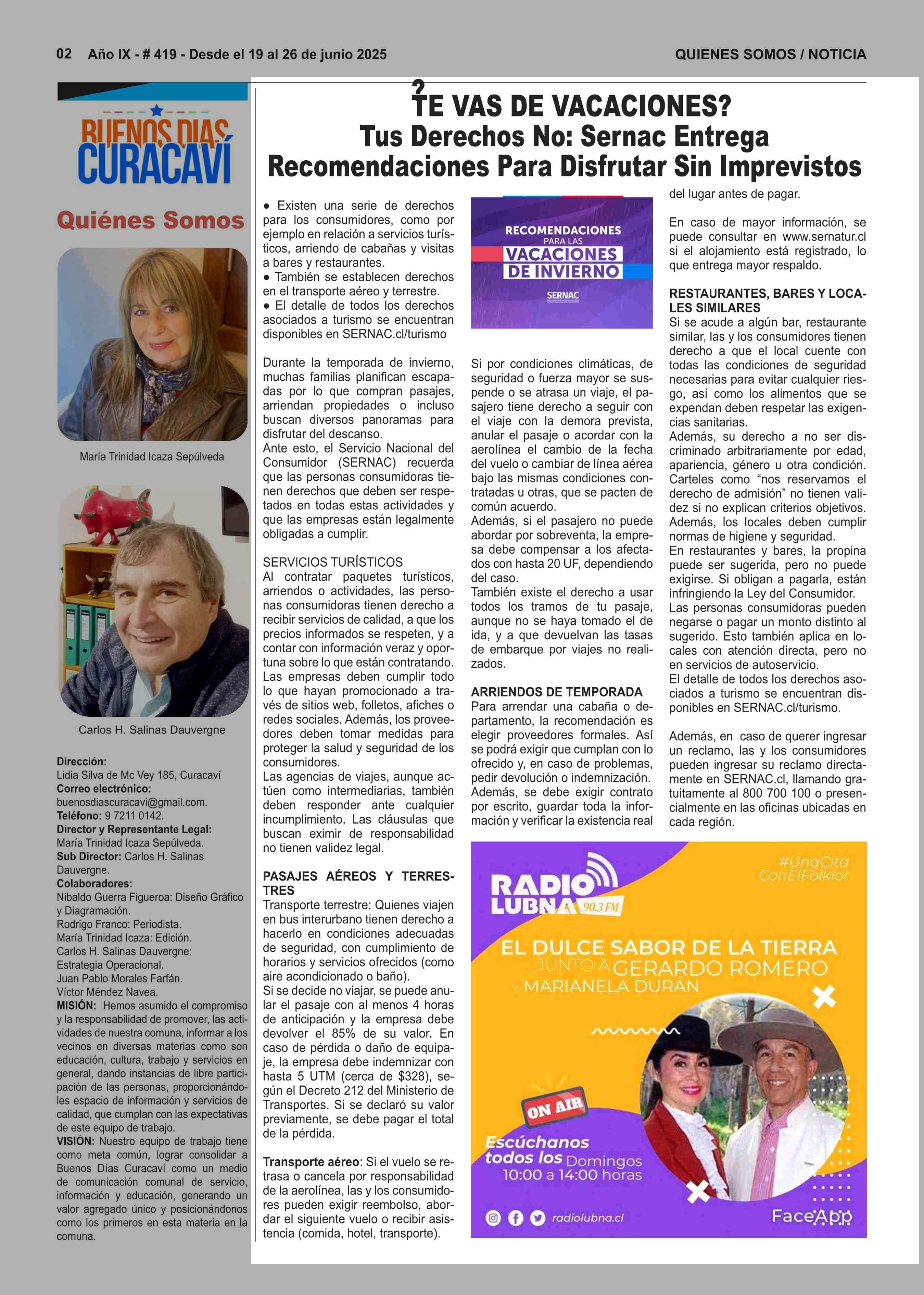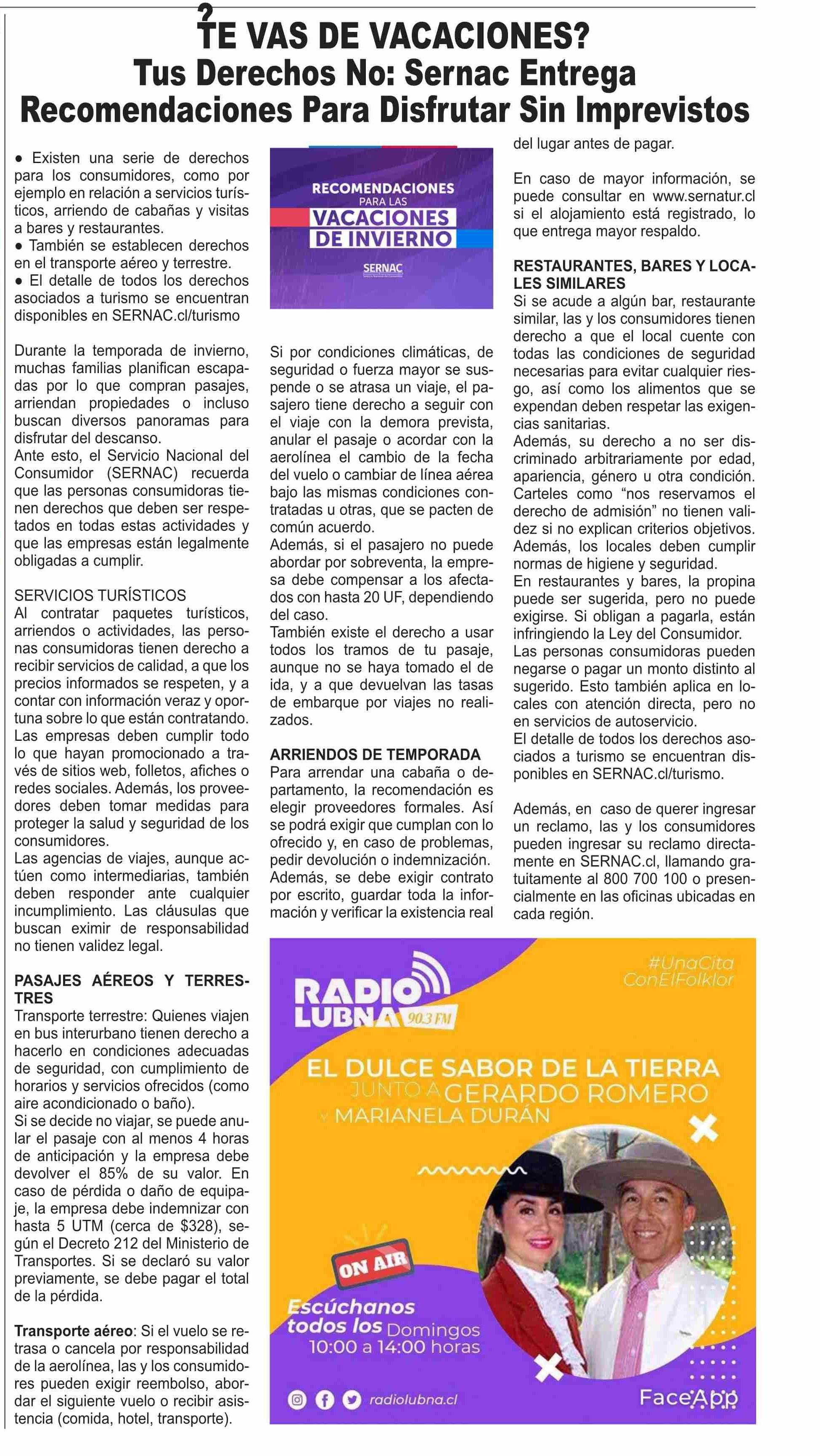 TE VAS DE VACACIONES? Tus Derechos No: Sernac Entrega Recomendaciones Para Disfrutar Sin Imprevistos 24-06-2025 Buenos Días Curacaví |