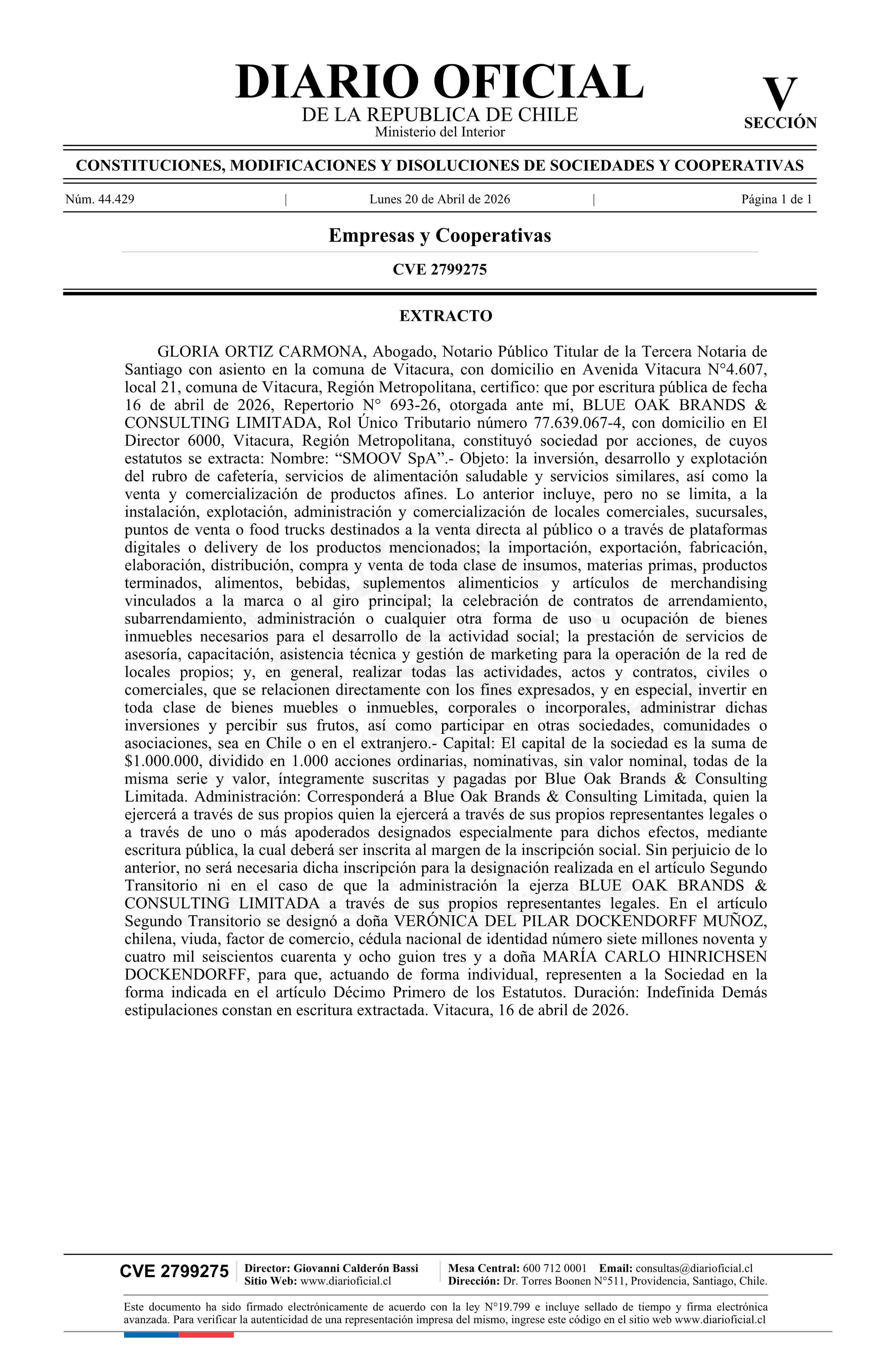 Fuente: Diario Oficial Edición Electrónica (Diario Oficial de Chile - 5 Empresas Y Cooper) Página(s): 50