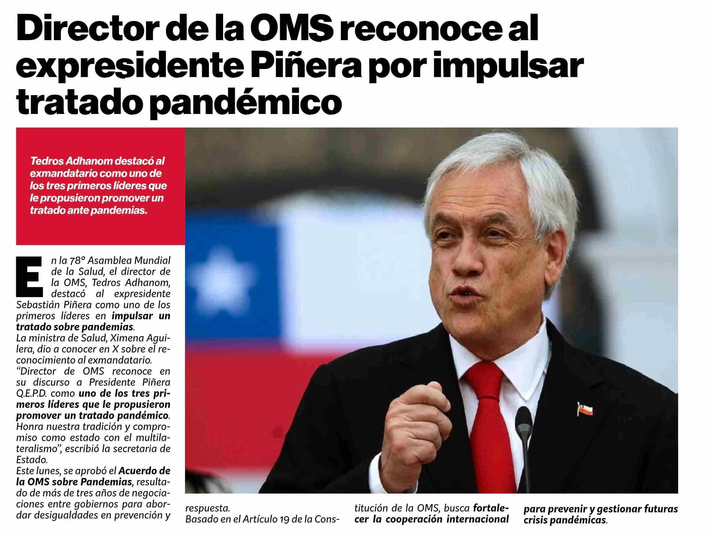 | Título: | Director de la OMS reconoce al expresidente Piñera por impulsar tratado pandémico |