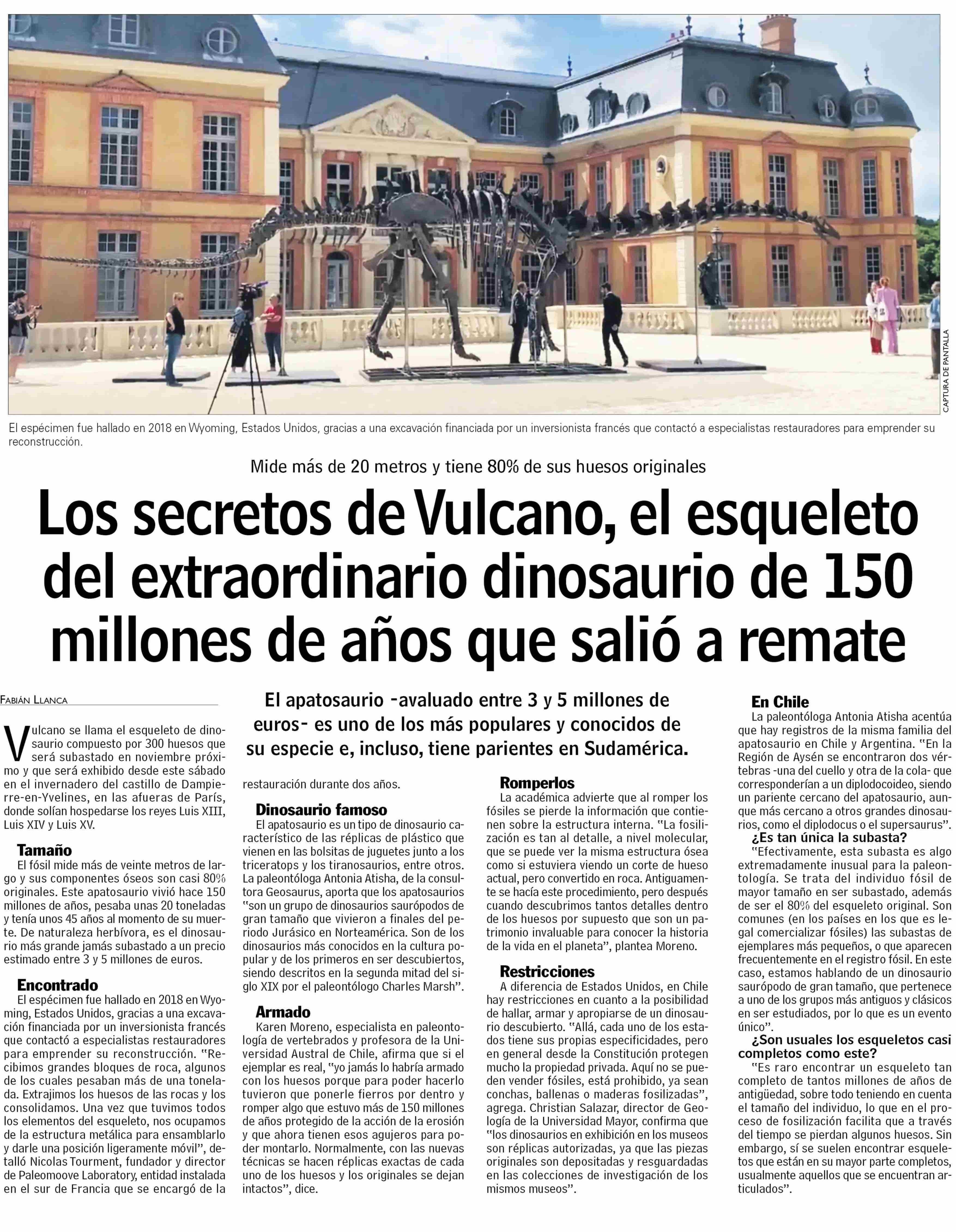 Los secretos de Vulcano, el esqueleto del extraordinario dinosaurio de 150 millones de años que salió a remate 12-07-2024 Las Últimas Noticias |