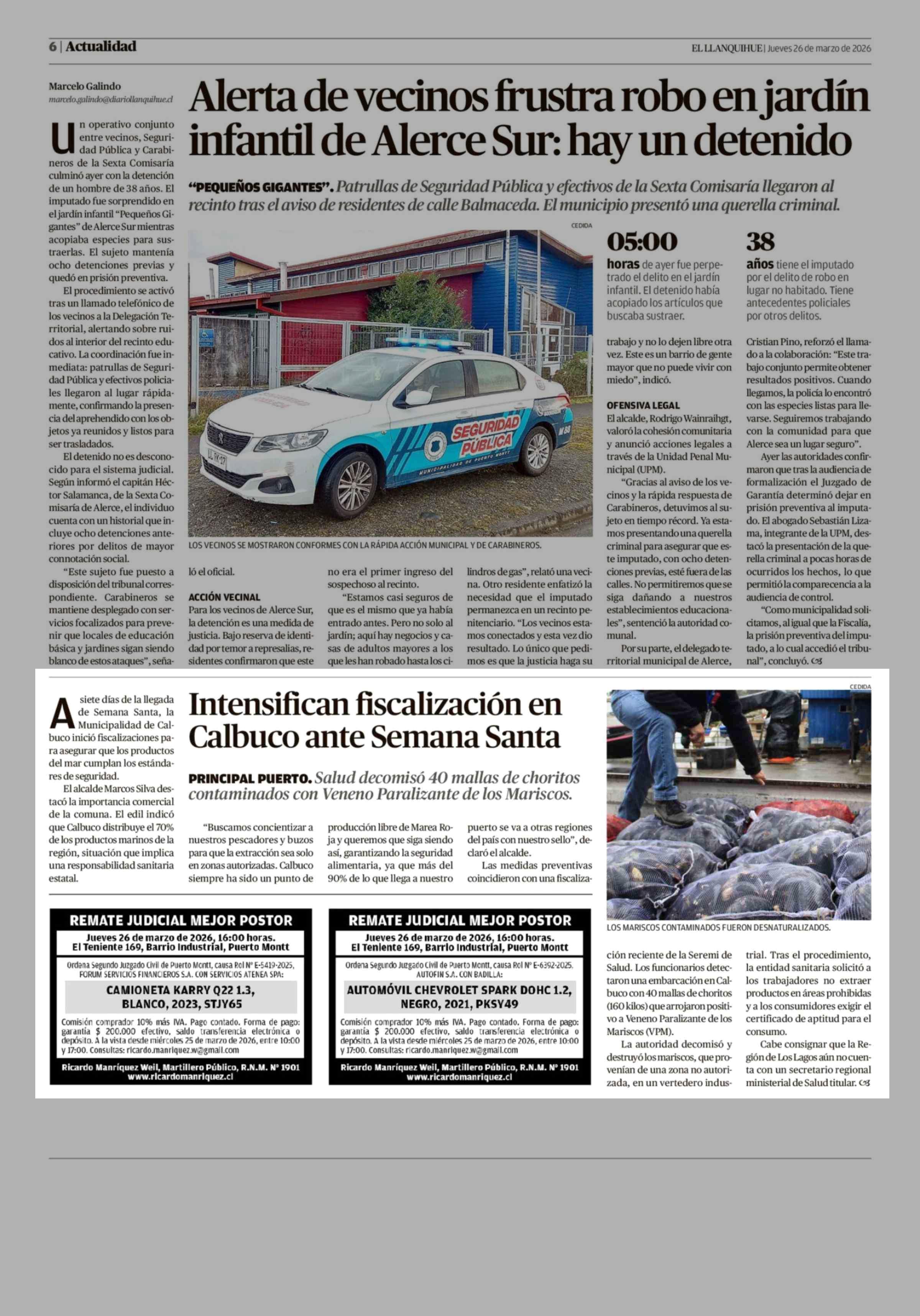 Intensifican fiscalización en Calbuco ante Semana Santa 26-03-2026 El Llanquihue |