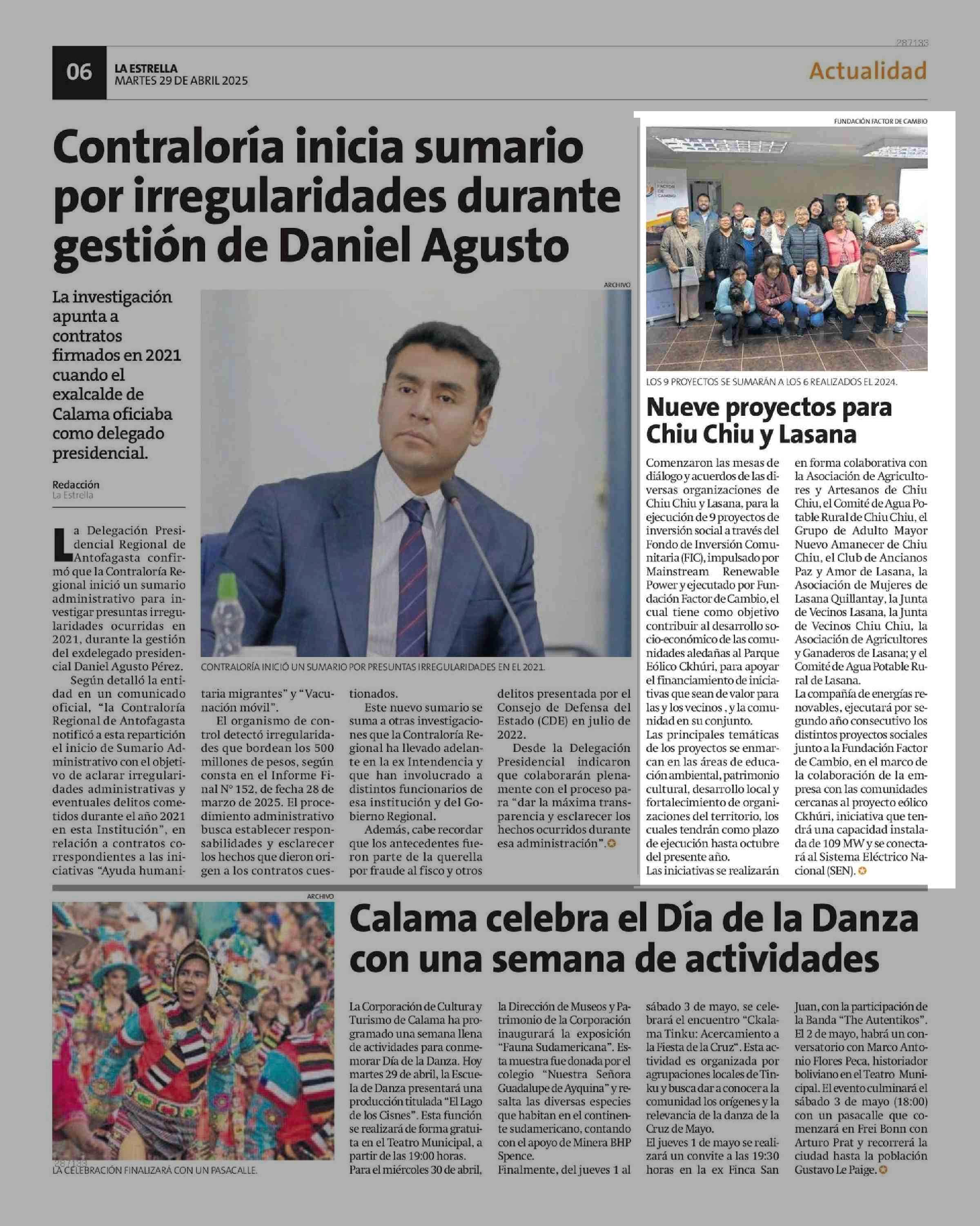 Nueve proyectos para Chiu Chiu y Lasana 29-04-2025 La Estrella de Antofagasta |