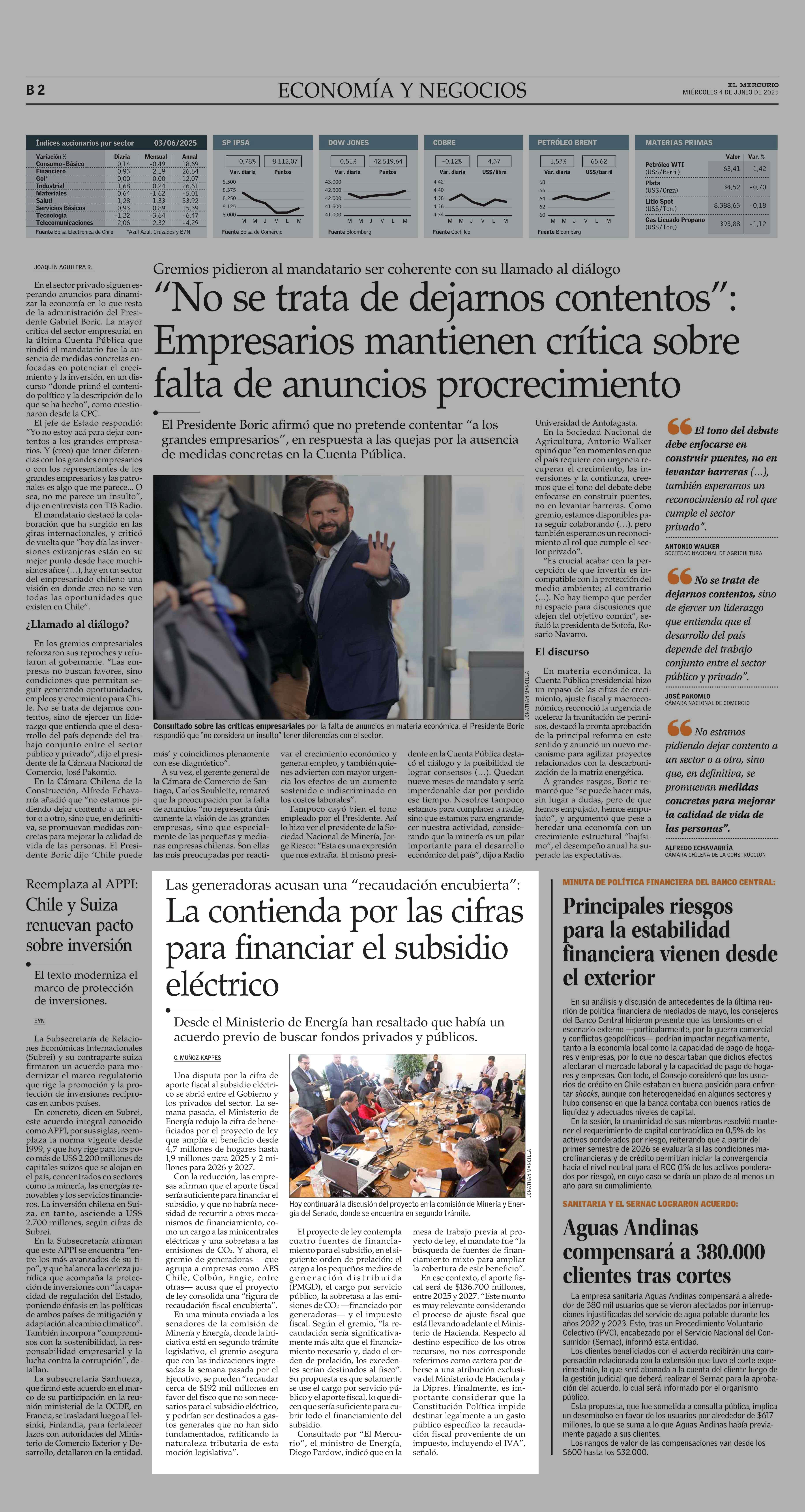 La contienda por las cifras para financiar el subsidio eléctrico 04-06-2025 El Mercurio |