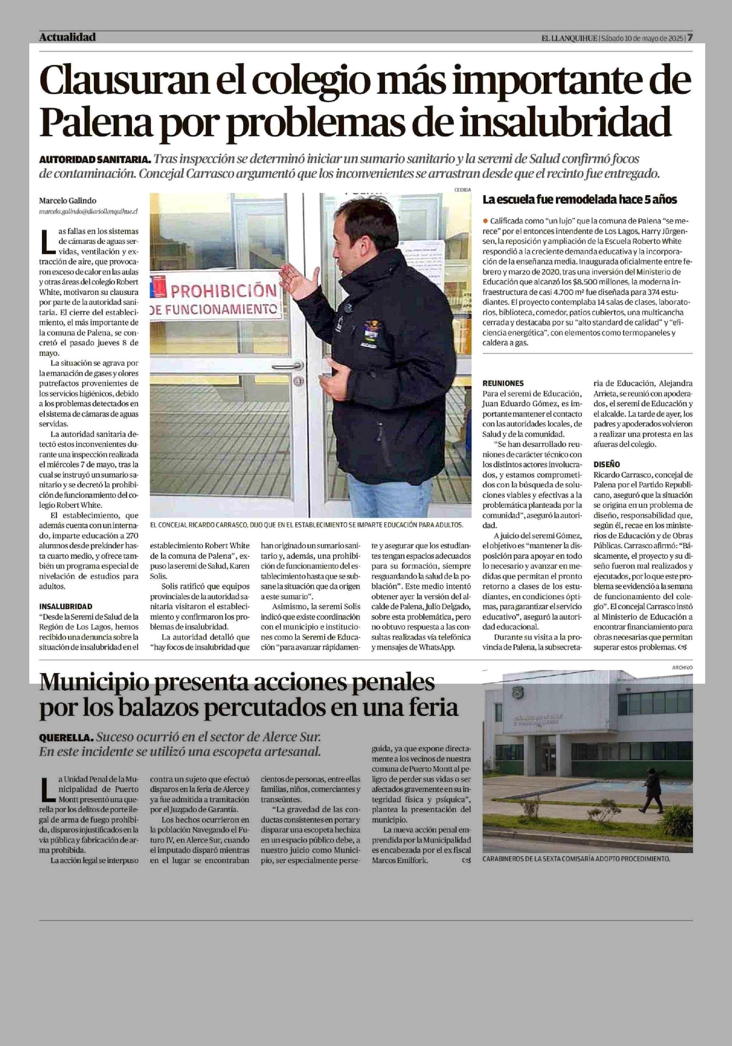 Clausuran el colegio más importante de Palena por problemas de insalubridad 10-05-2025 El Llanquihue |