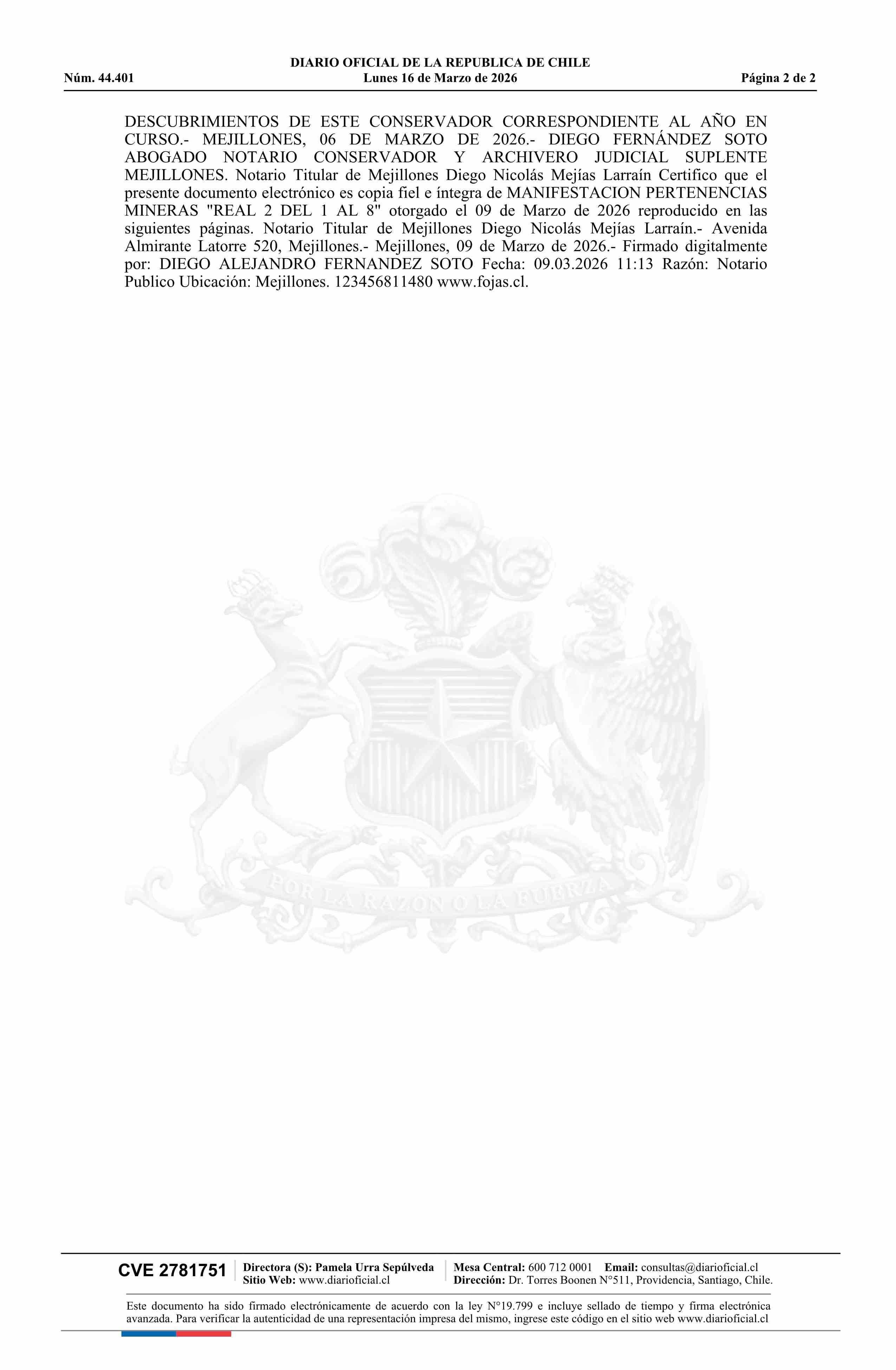 16-03-2026 DIARIO OFICIAL CHILE - BOLETÍN OFICIAL DE MINERÍA