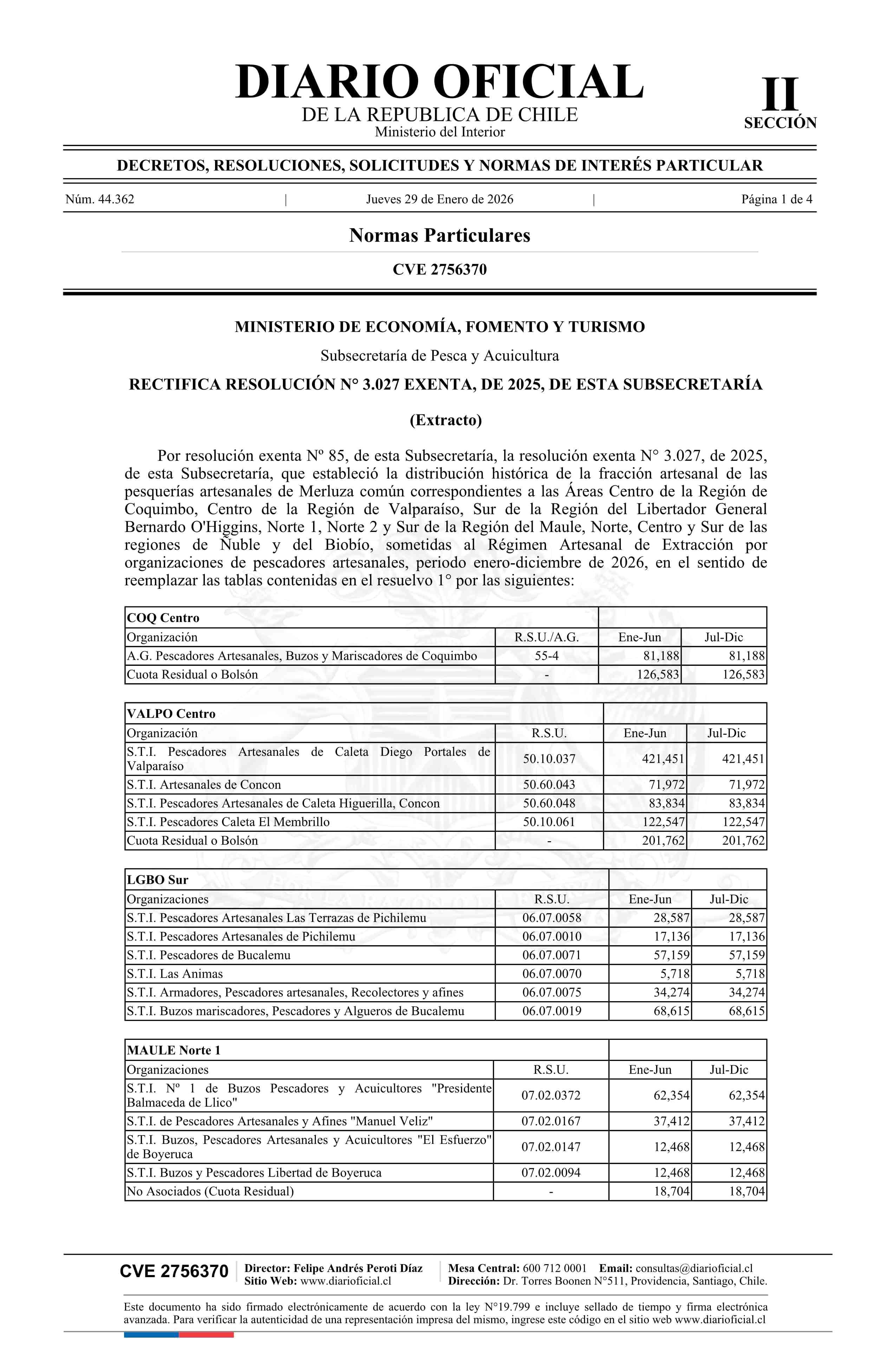 Fuente: Diario Oficial Edición Electrónica (Diario Oficial de Chile - 2 Normas Particulares) Página(s): 1-4