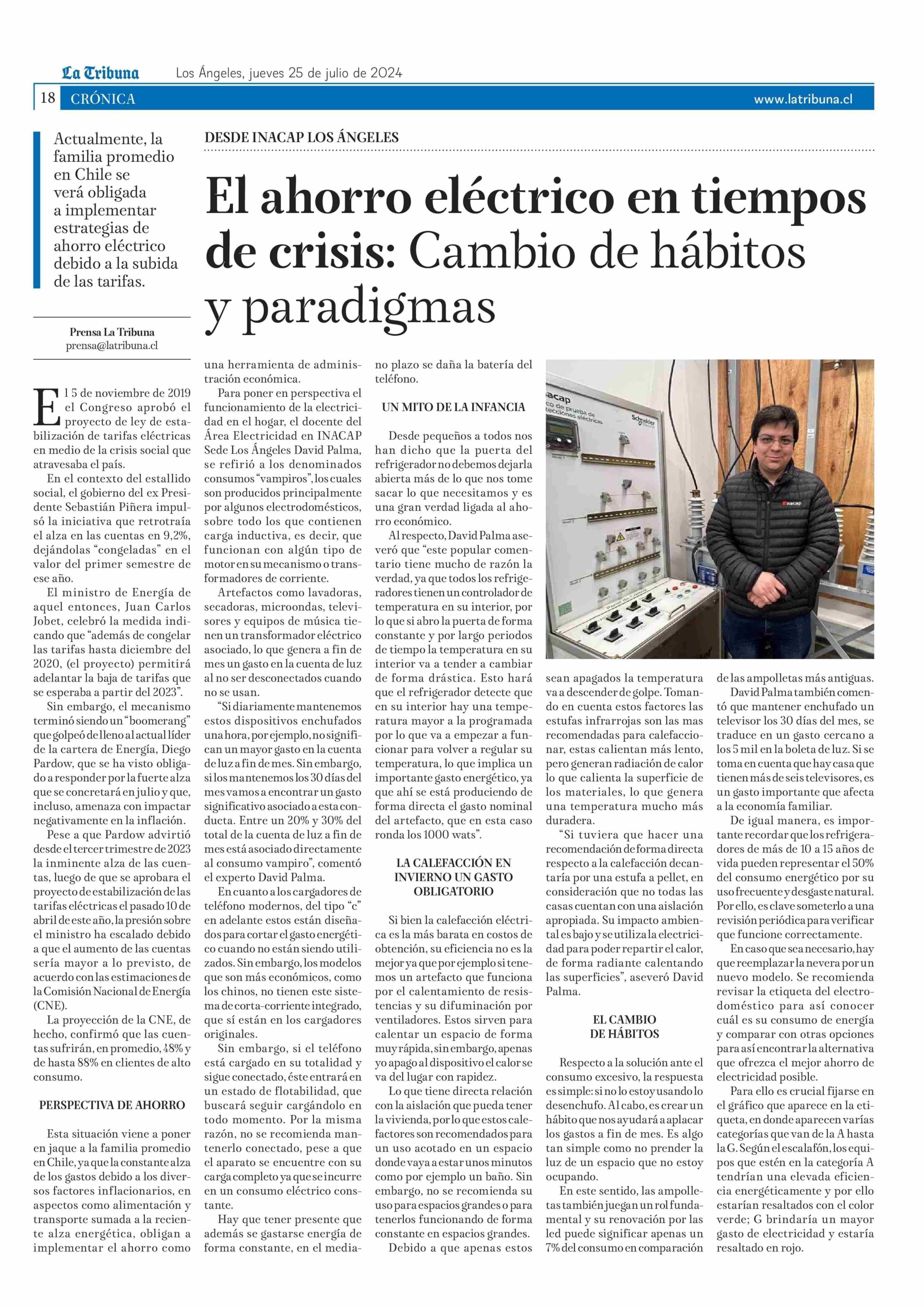 El ahorro eléctrico en tiempos de crisis: Cambio de hábitos y paradigmas 25-07-2024 La Tribuna |