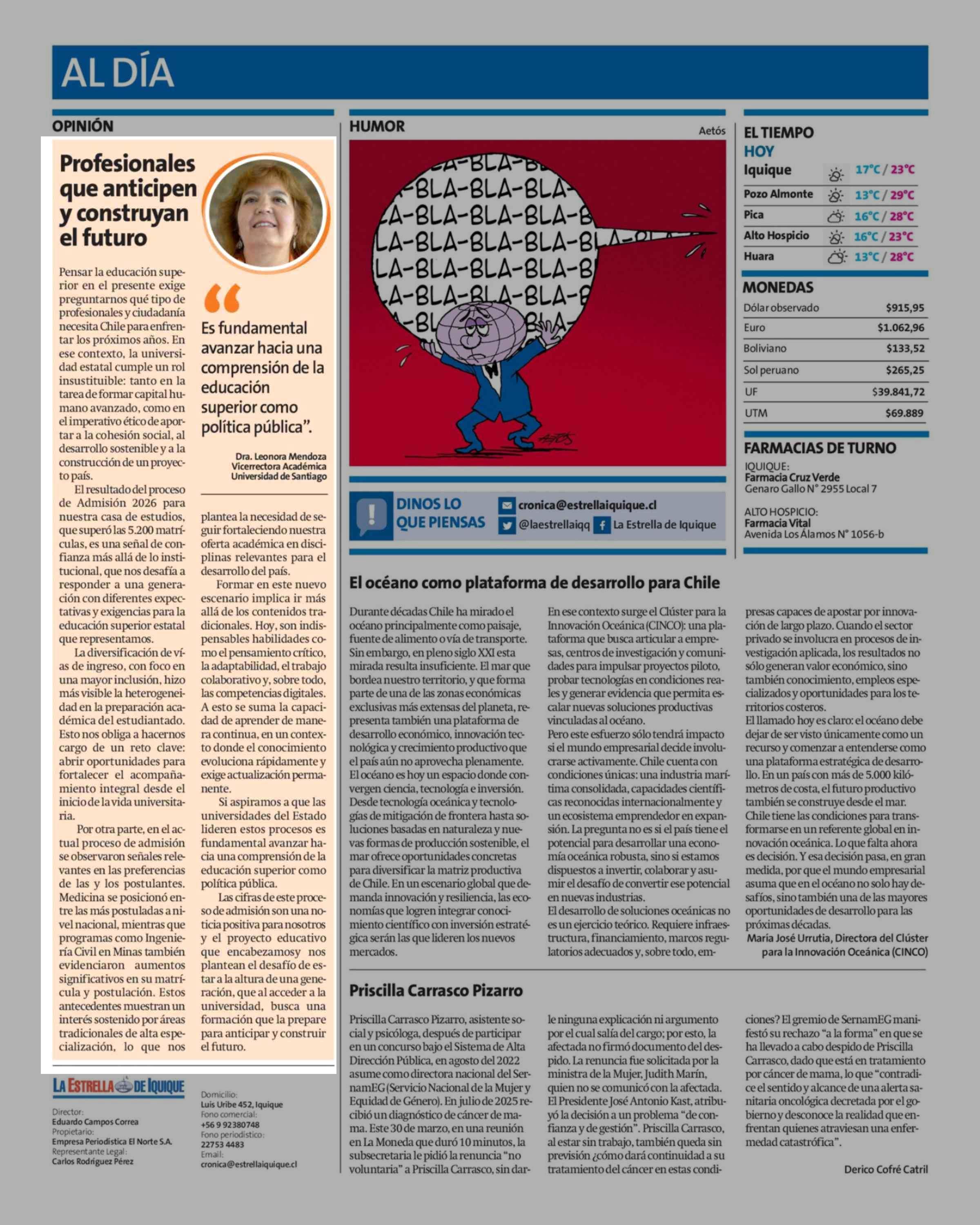Columnas de Opinión: Profesionales que anticipen y construyan el futuro 02-04-2026 La Estrella de Iquique |