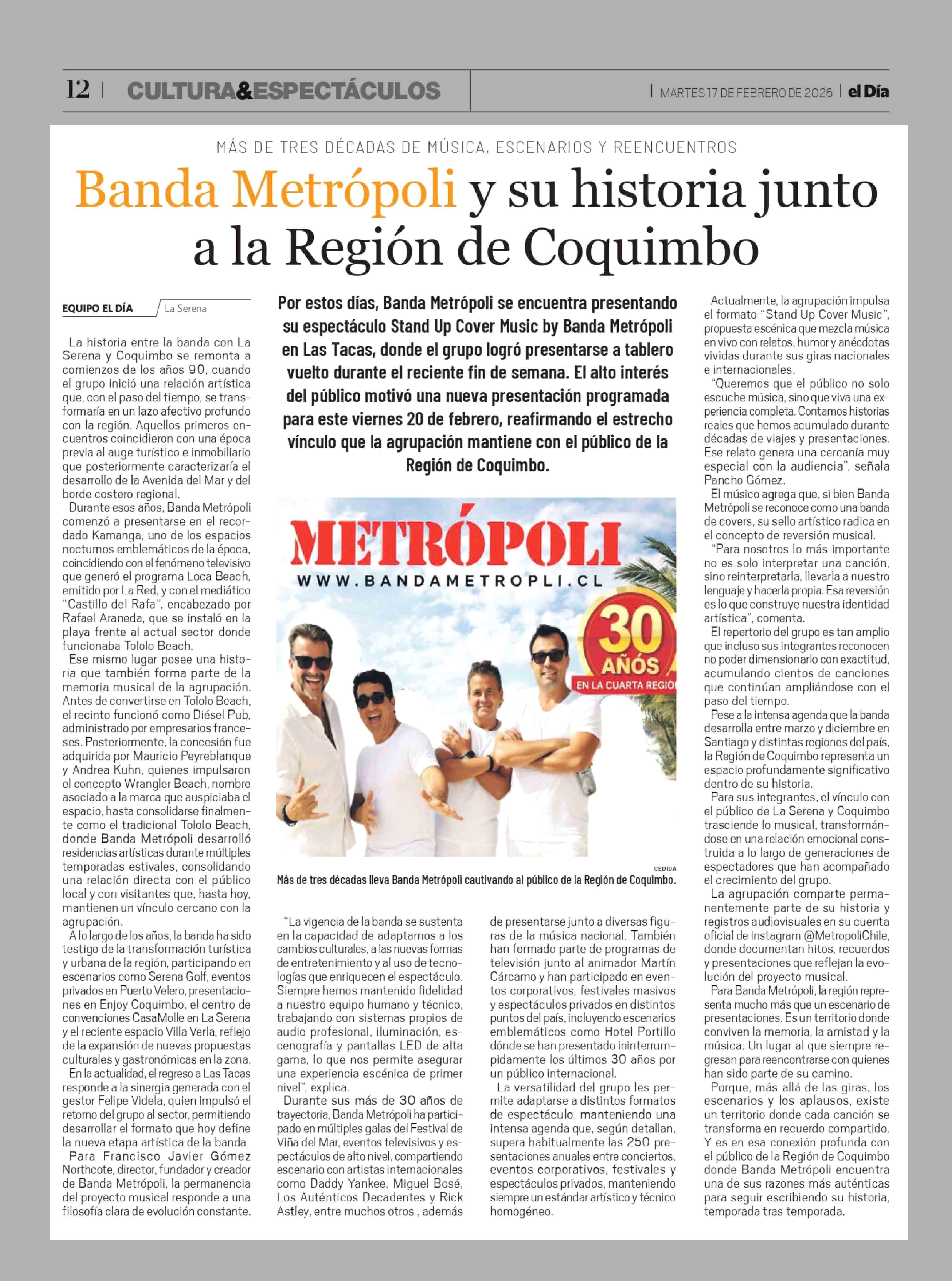 Banda Metrópoli y su historia junto a la Región de Coquimbo 17-02-2026 El Día |