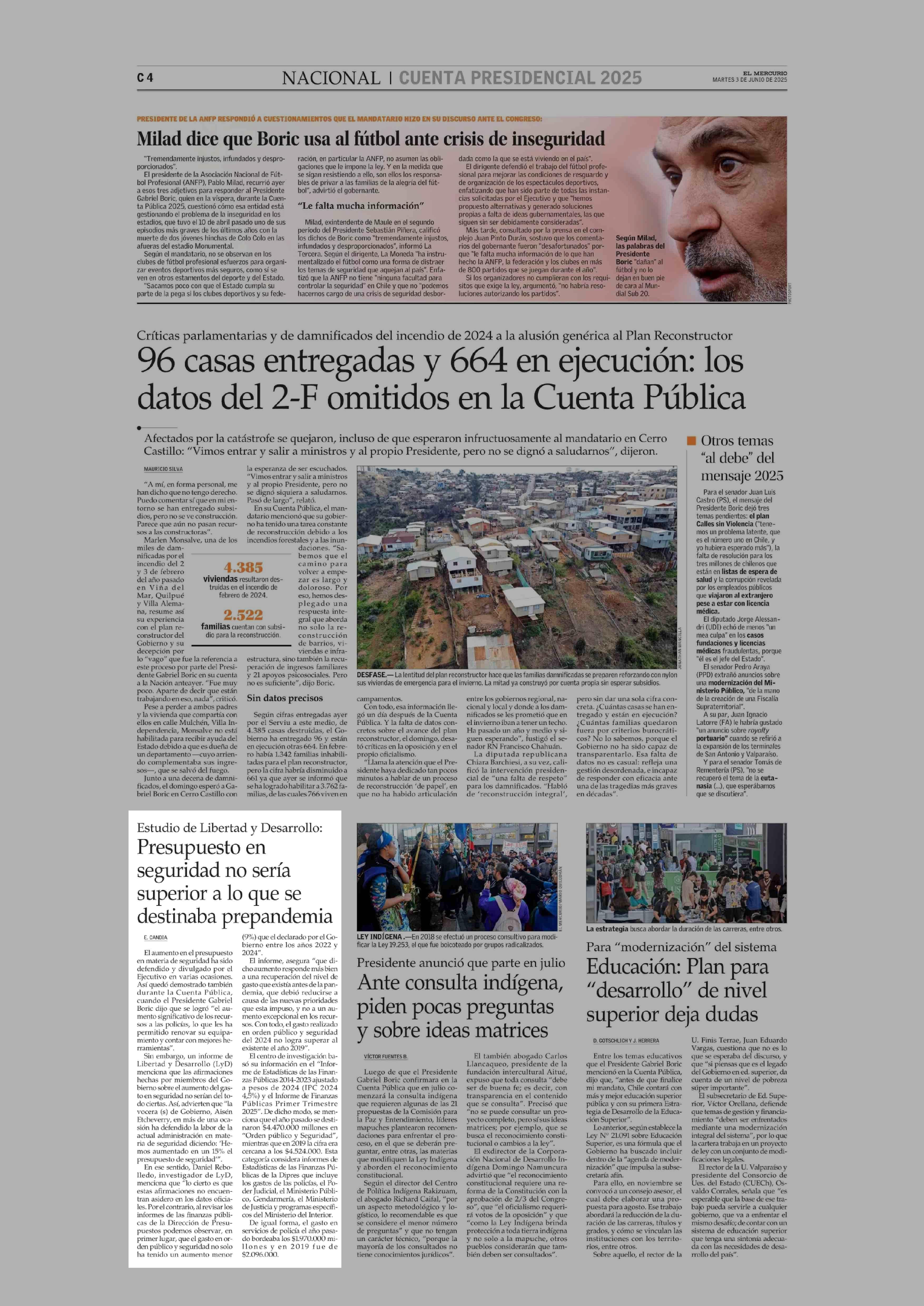 Presupuesto en superior a lo que se destinaba prepandemia seguridad no sería 03-06-2025 El Mercurio |