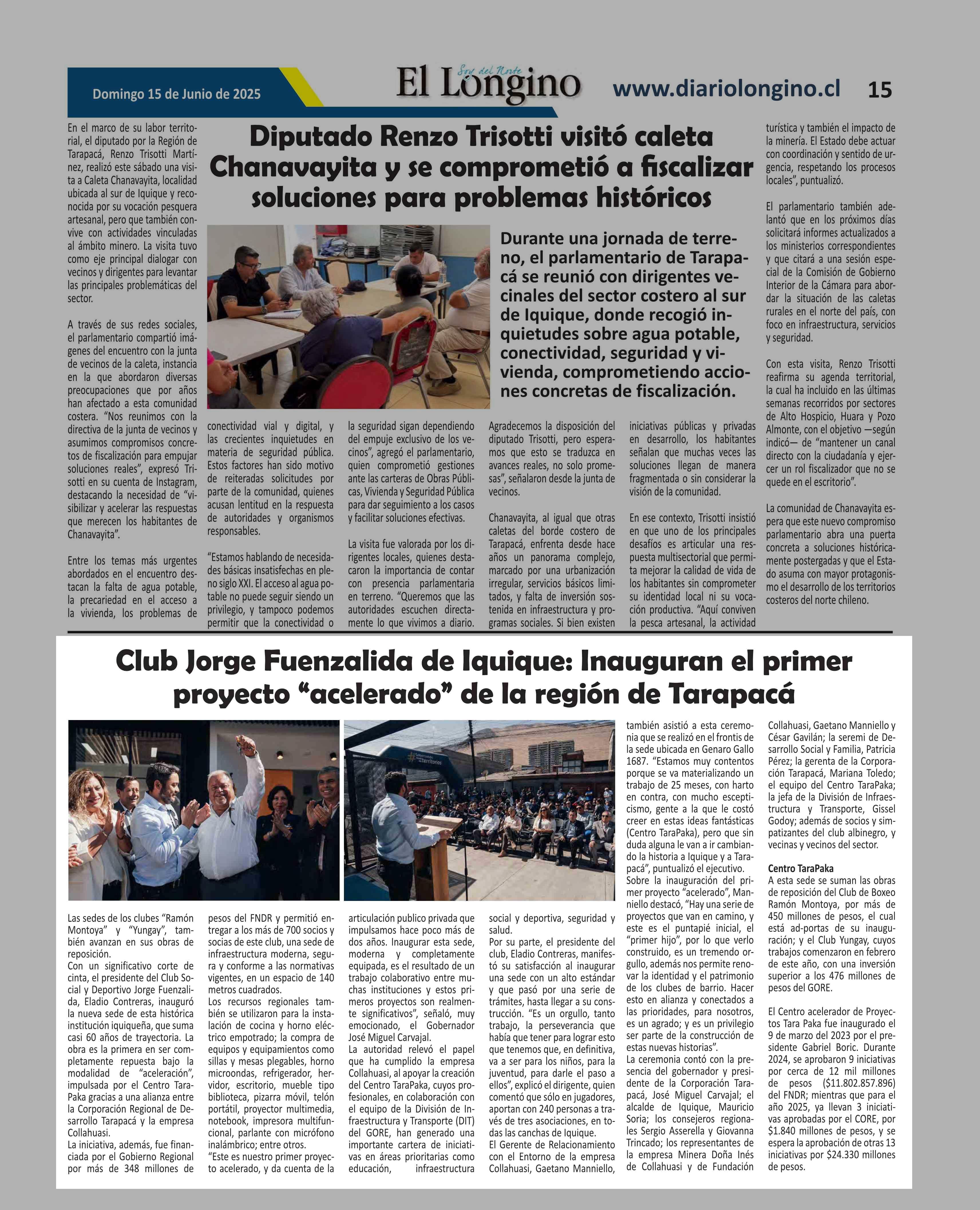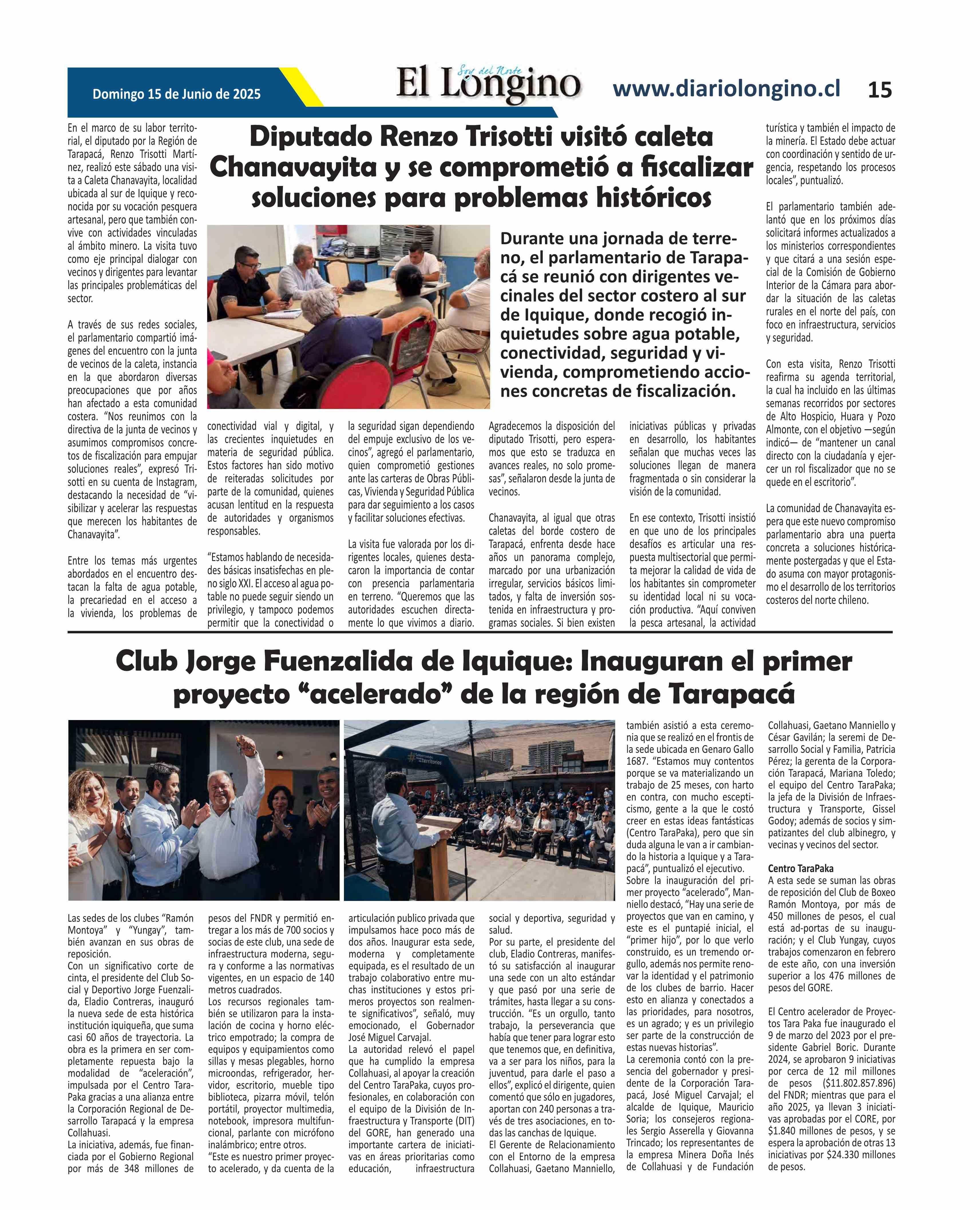 | Fecha: | 15-06-2025 | Sector: | Noticia general | Región: | Región de Tarapacá |