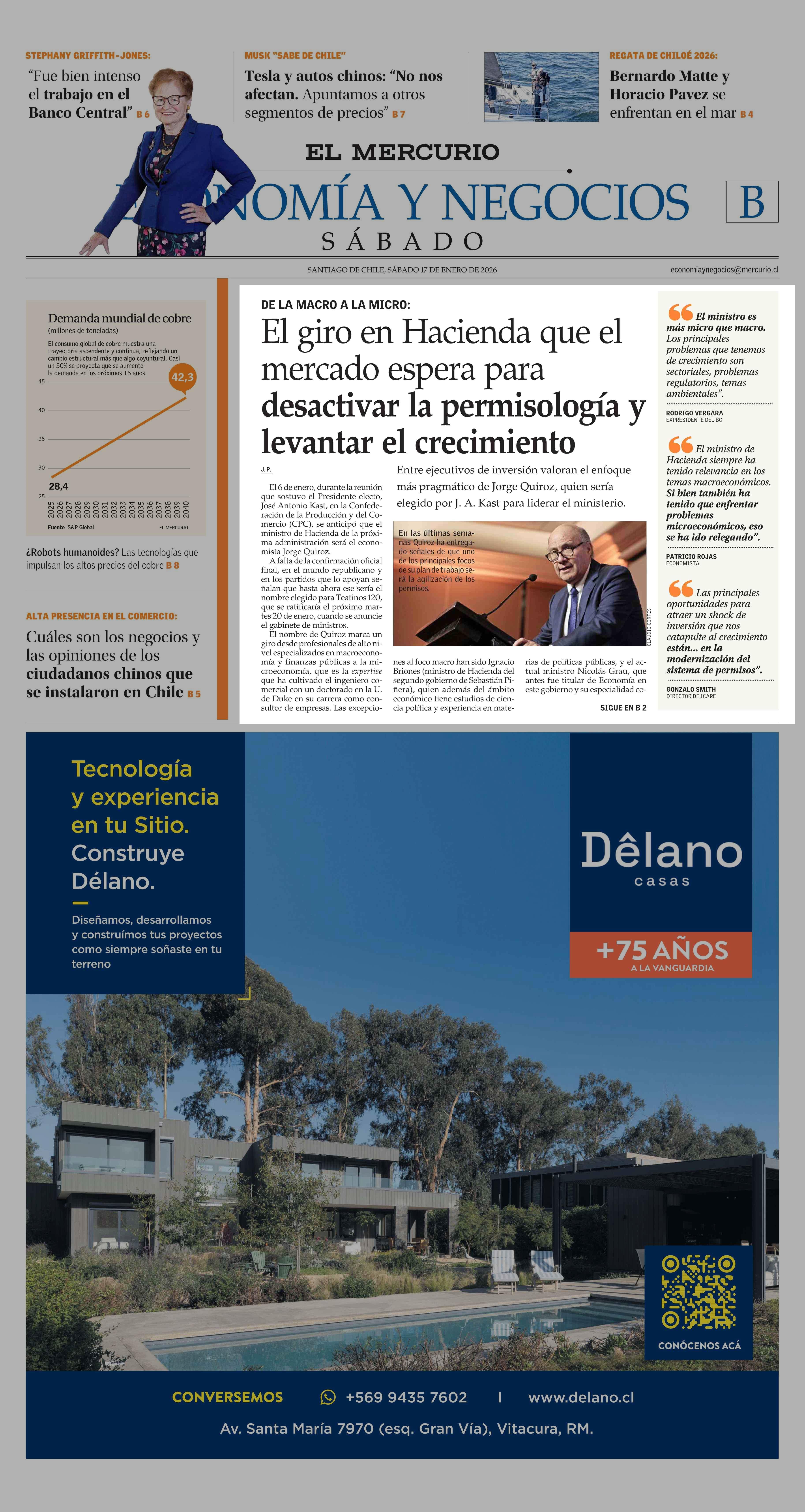 El giro en Hacienda que el mercado espera para desactivar la permisología y levantar el crecimiento 17-01-2026 El Mercurio |