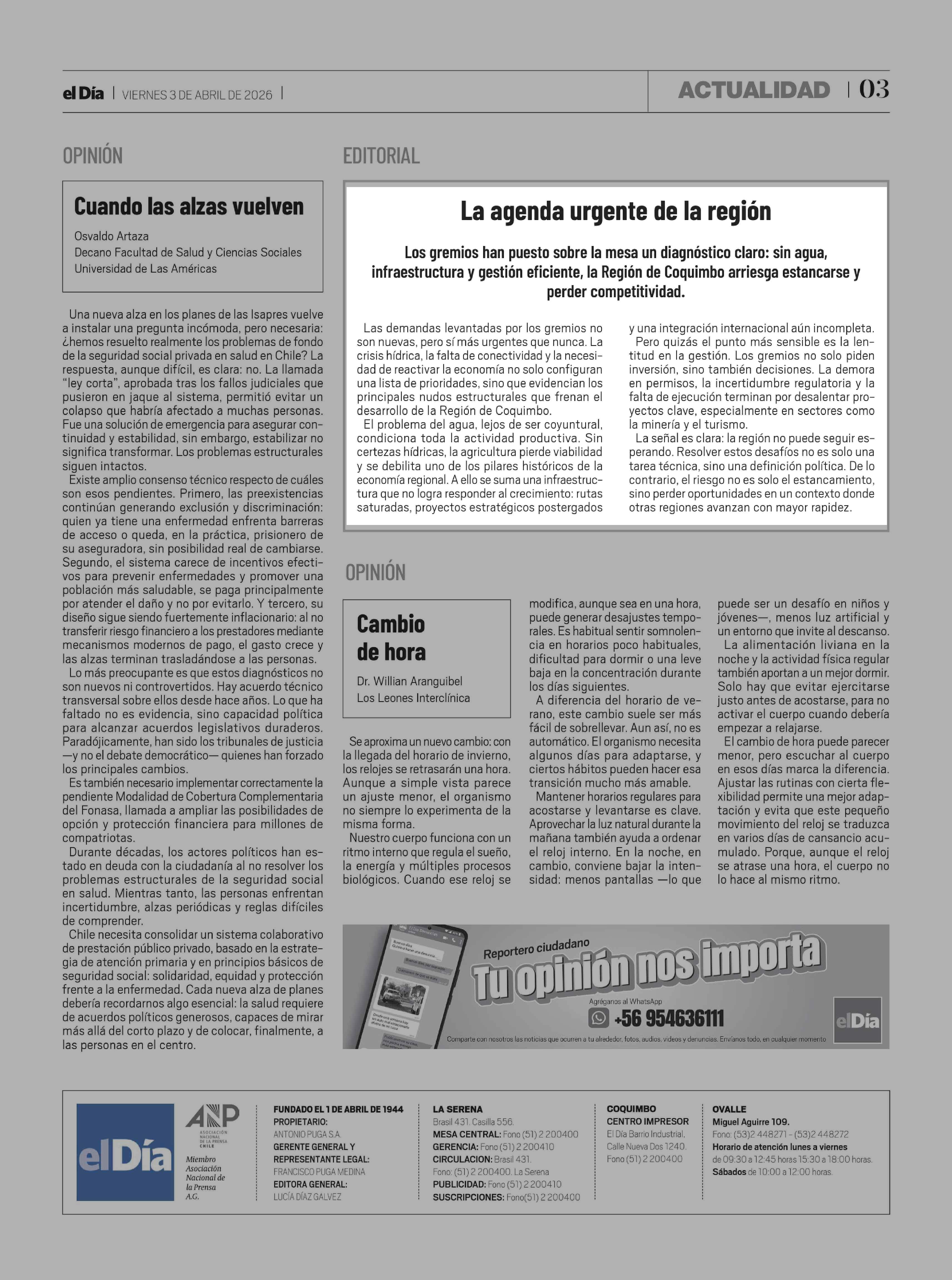 | Fecha: | 03-04-2026 | Sector: | Editorial | Región: | Región de Coquimbo |