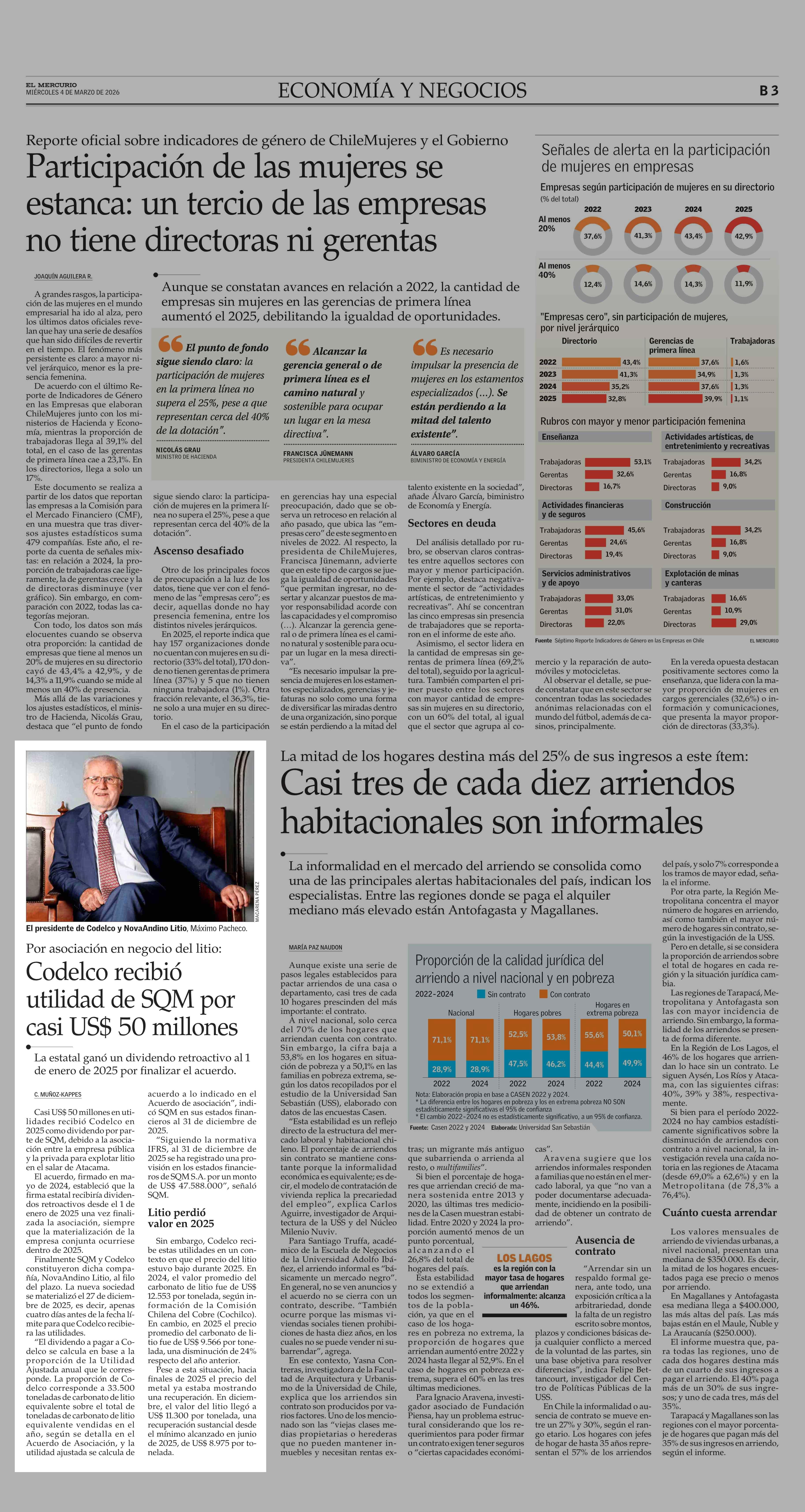 Codelco recibió utilidad de SQM por casi US$ 50 millones 04-03-2026 El Mercurio |