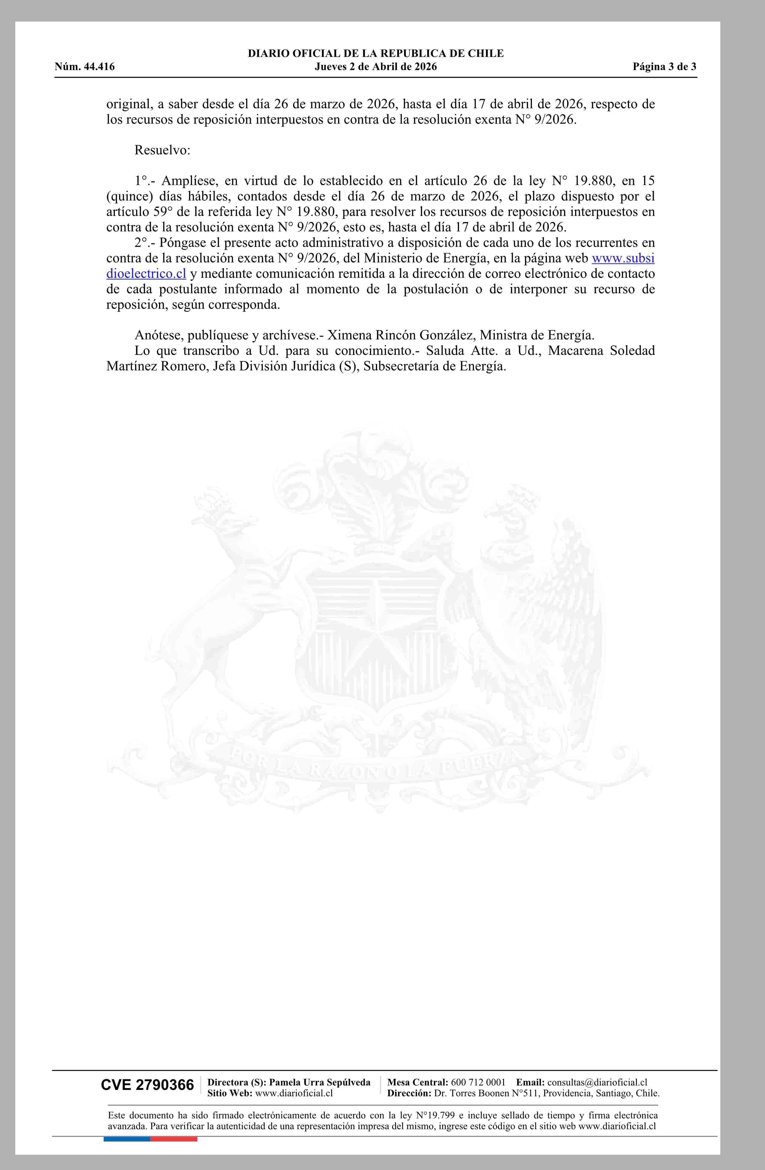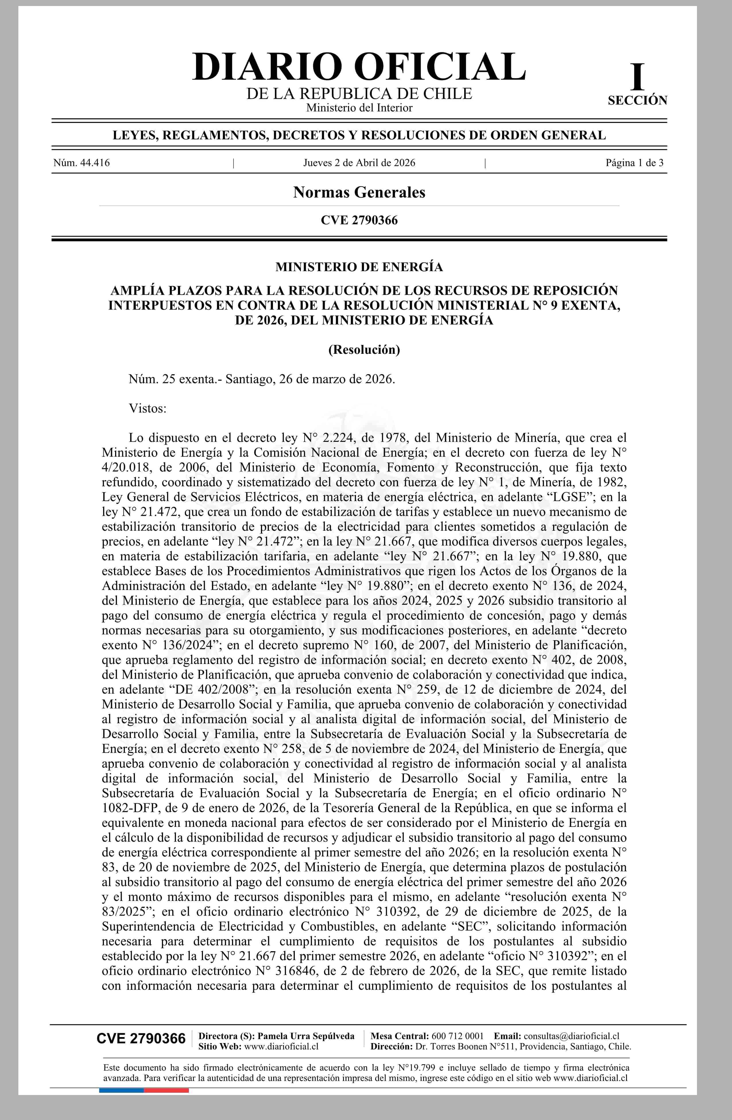 MINISTERIO DE ENERGÍA 02-04-2026 Diario Oficial Edición Electrónica |