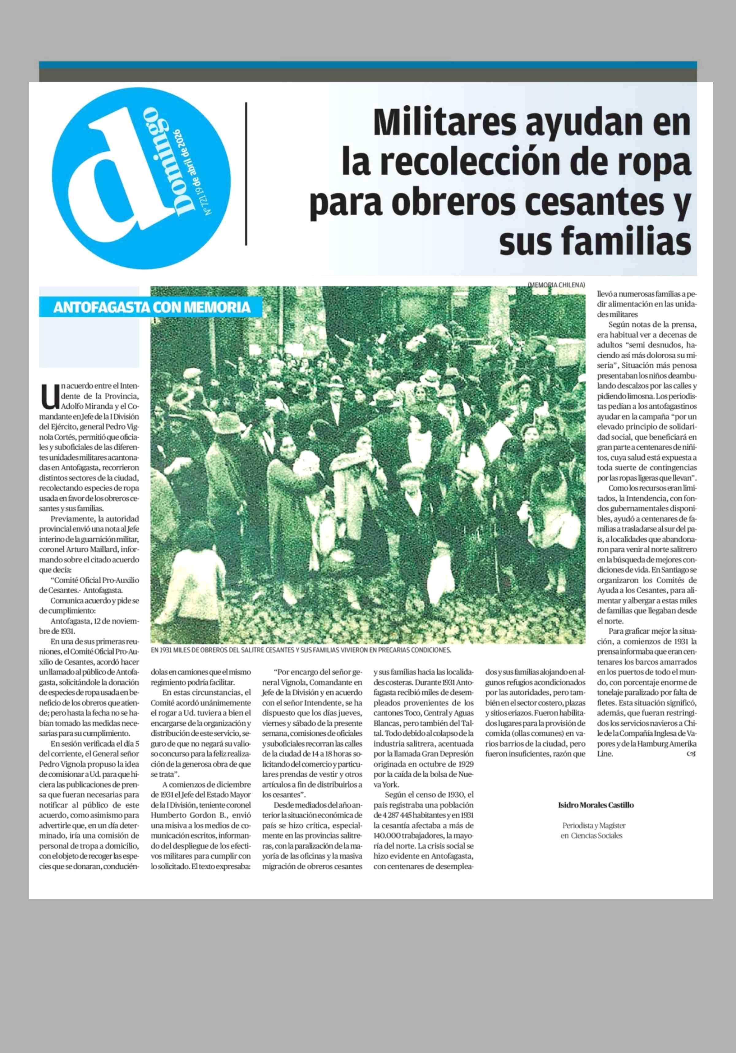 Militares ayudan en la recolección de ropa para obreros cesantes y sus familias 19-04-2026 El Mercurio de Calama |