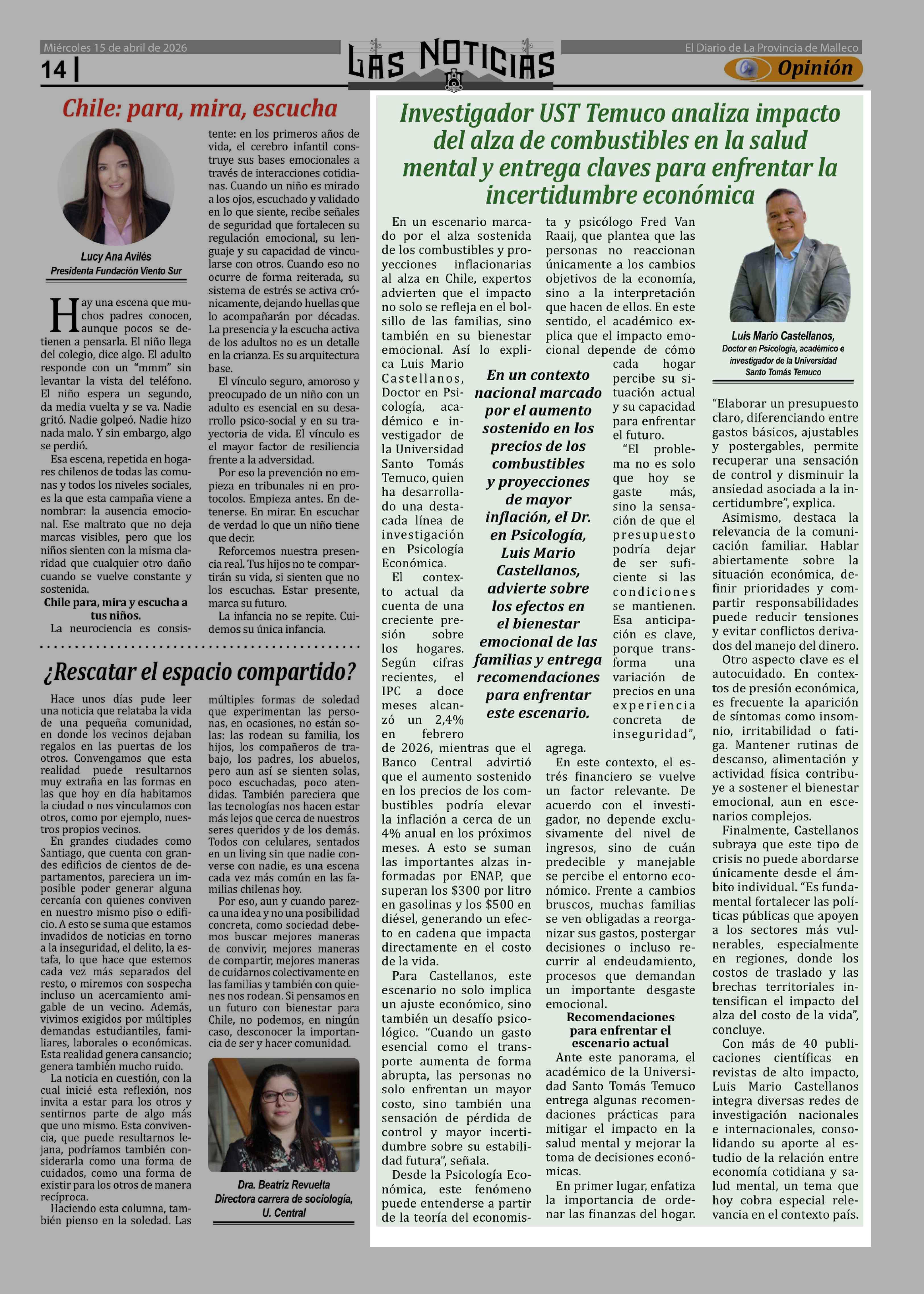 Fecha: 15-04-2026 Sector: Columnas de Opinión Región: Región de la Araucanía