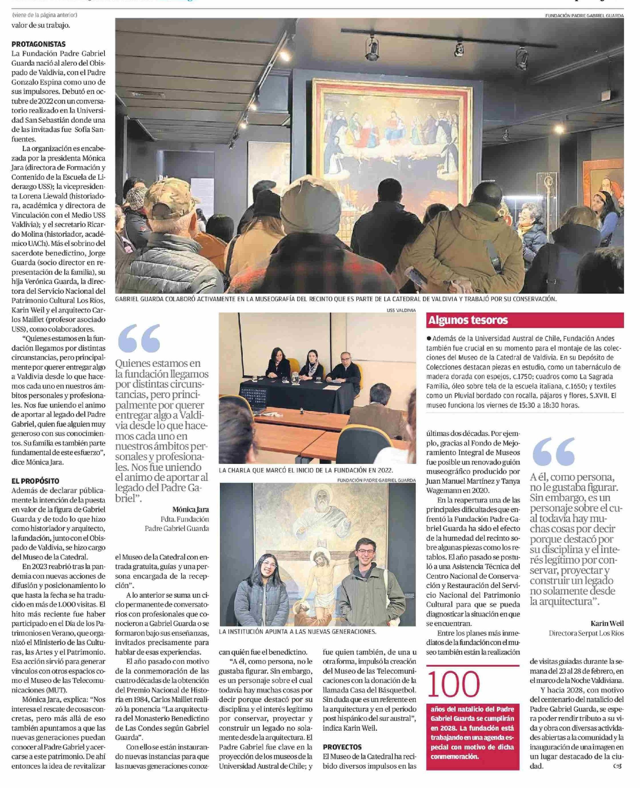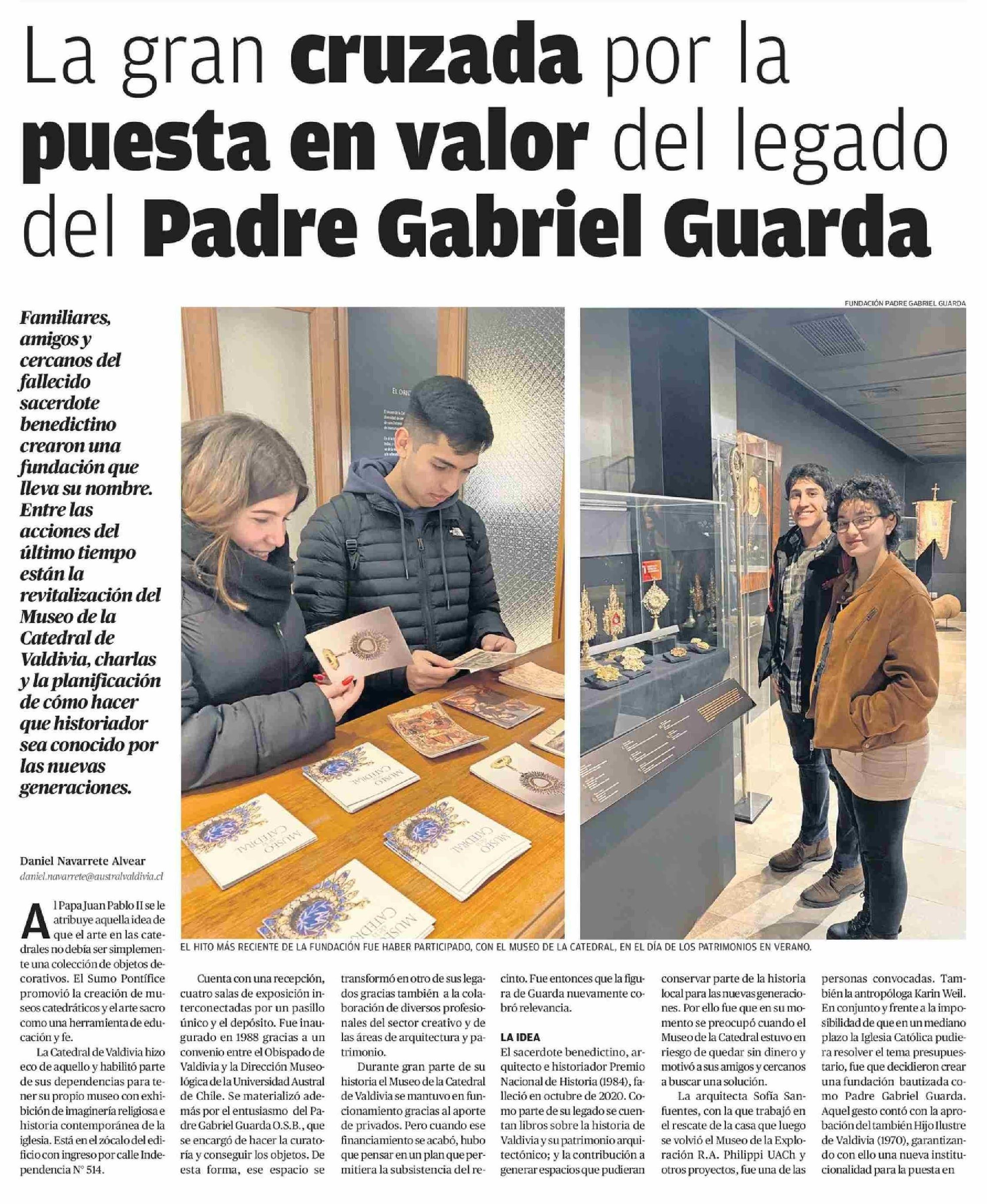 La gran cruzada por la puesta en valor del legado del Padre Gabriel Guarda 08-02-2026 Diario Austral Región de Los Ríos |