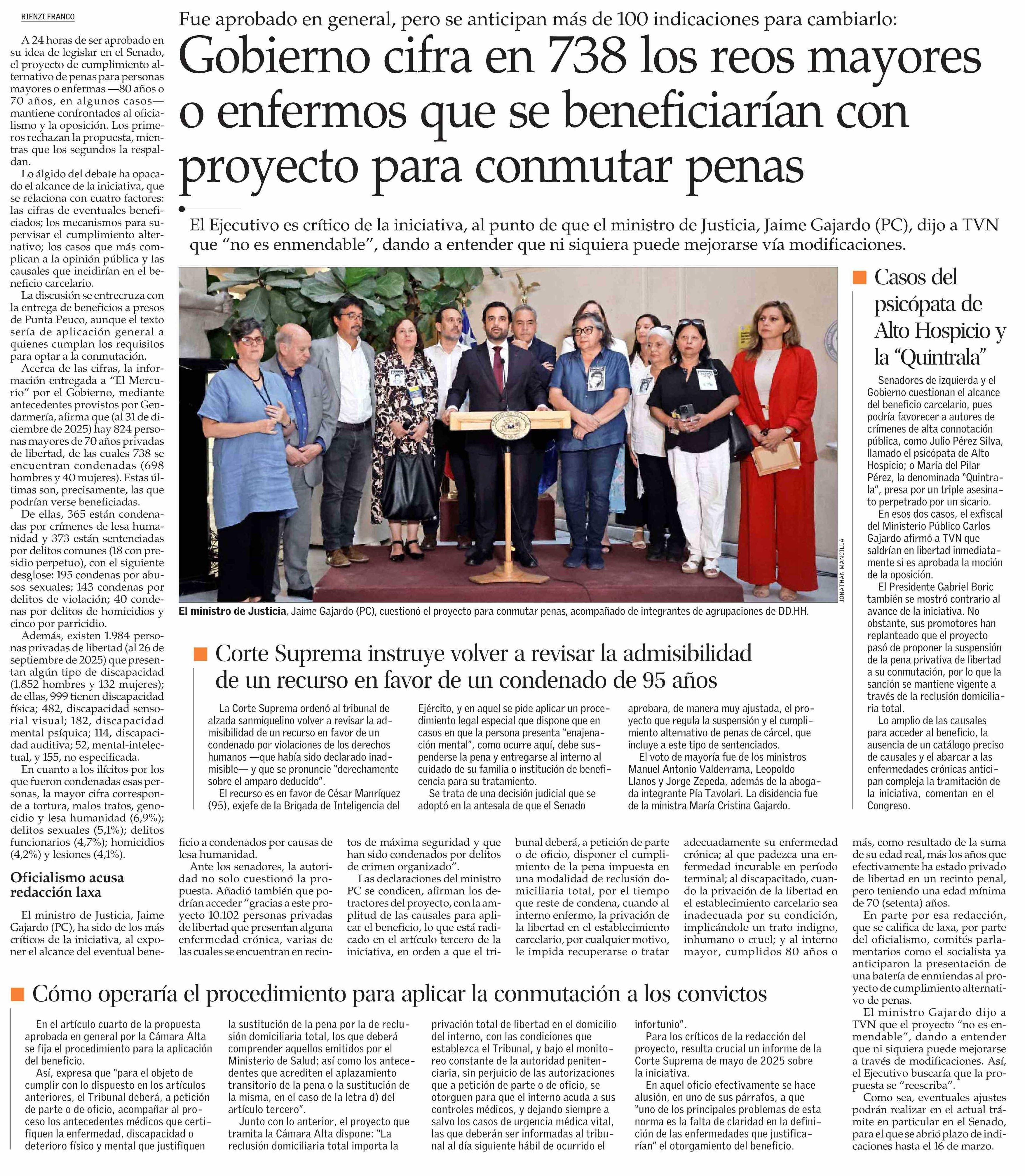 Título: Gobierno cifra en 738 los reos mayores o enfermos que se beneficiarían con proyecto para conmutar penas
