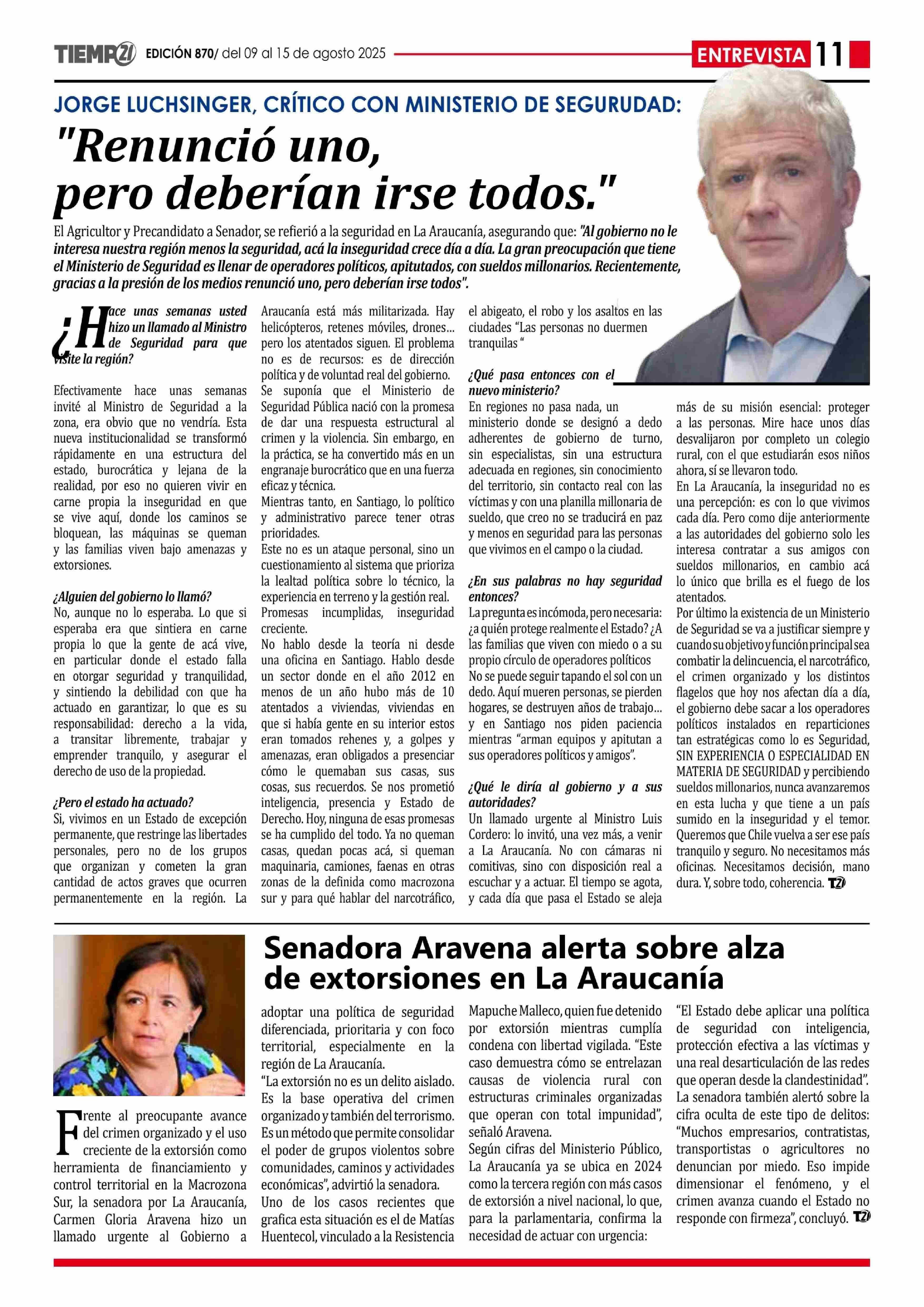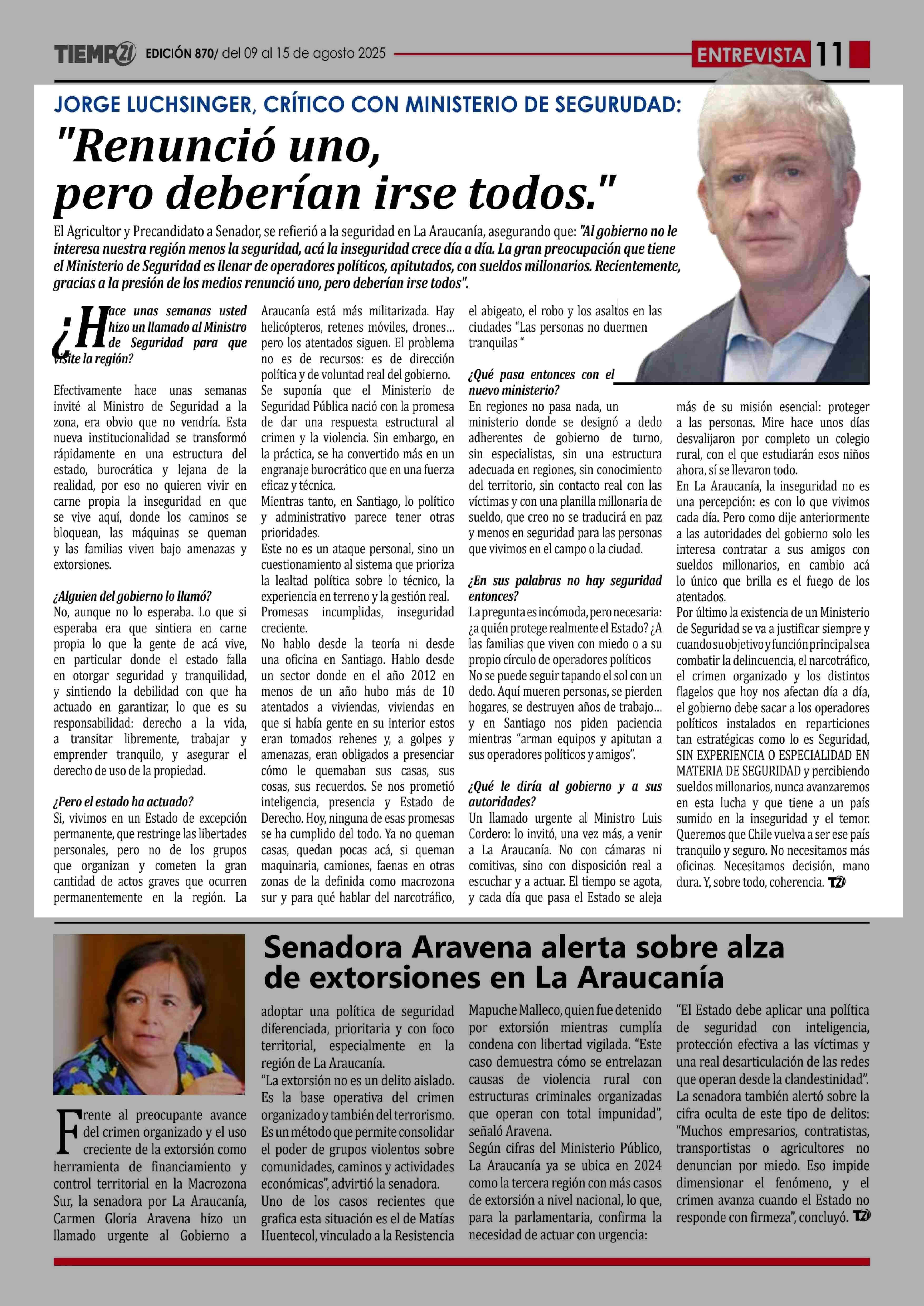 "Renunció uno, pero deberían irse todos." 09-08-2025 Tiempo 21 |