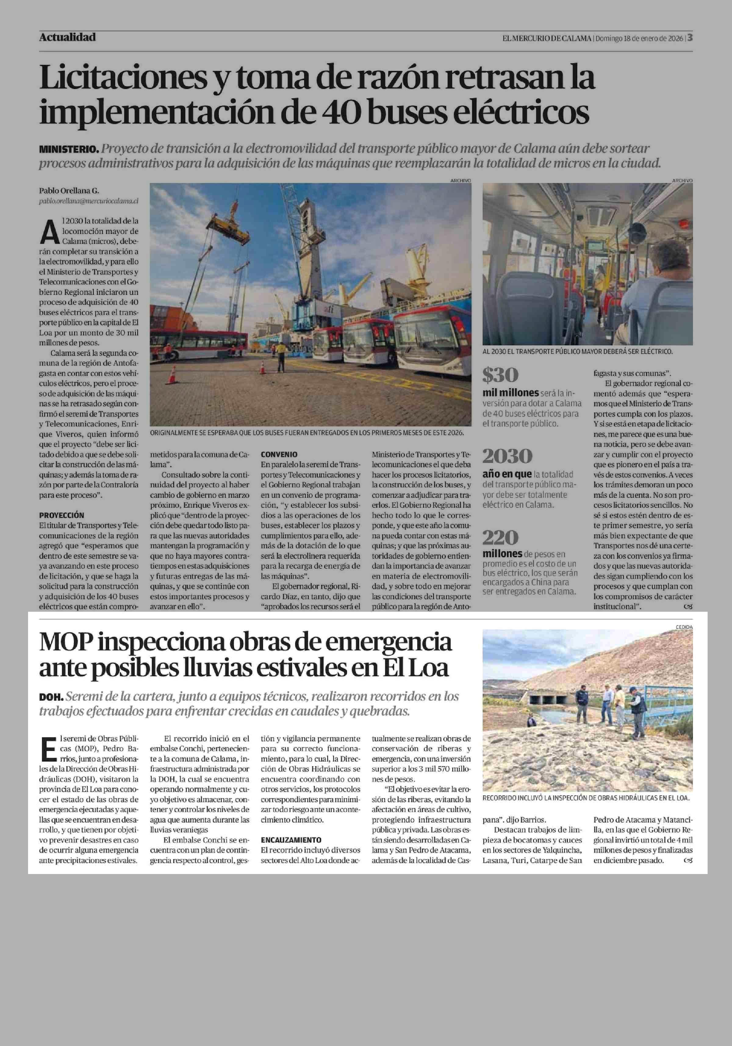 MOP inspecciona obras de emergencia ante posibles lluvias estivales en El Loa 18-01-2026 El Mercurio de Calama |