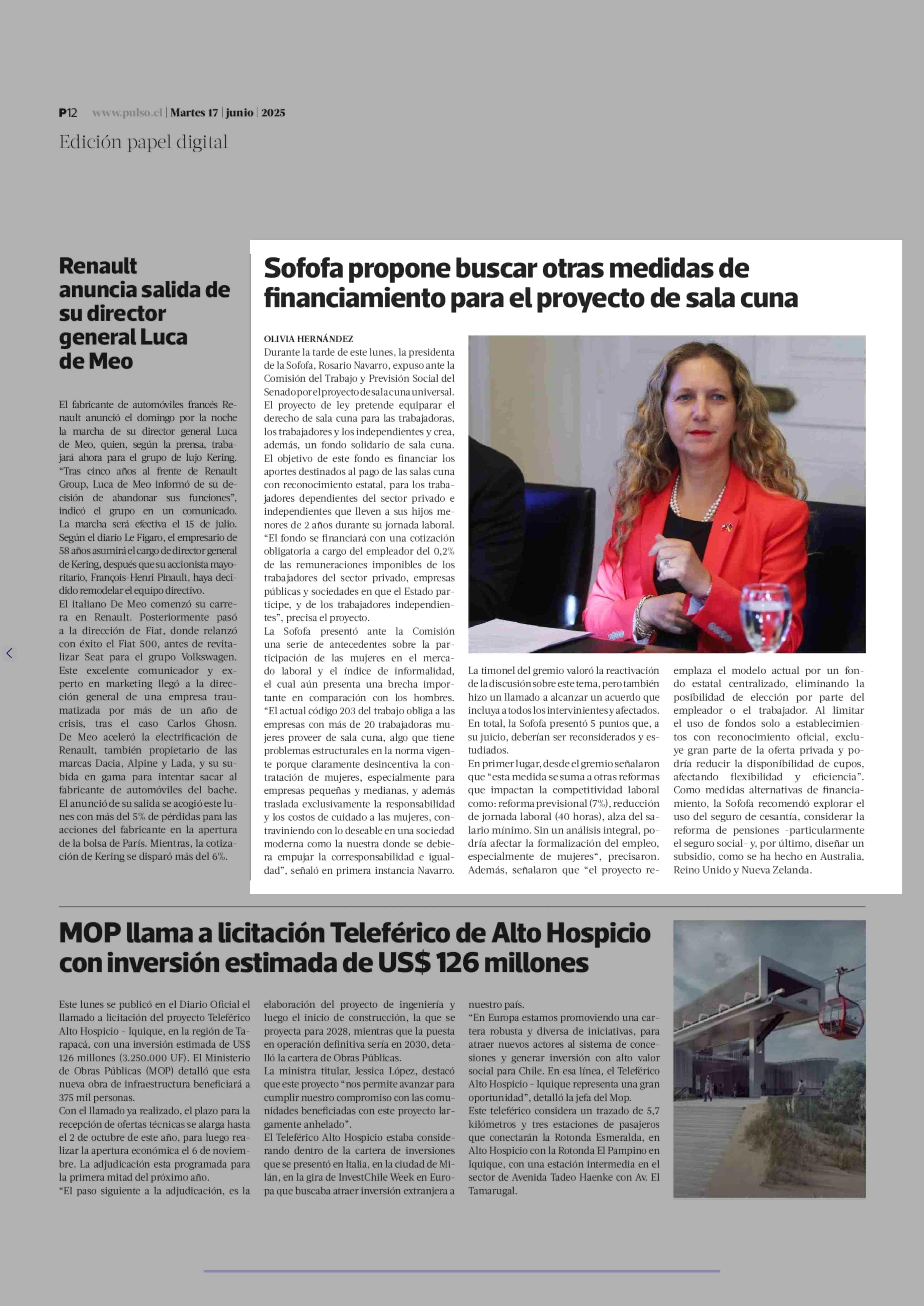 Título: Sofofa propone buscar otras medidas de financiamiento para el proyecto de sala cuna
