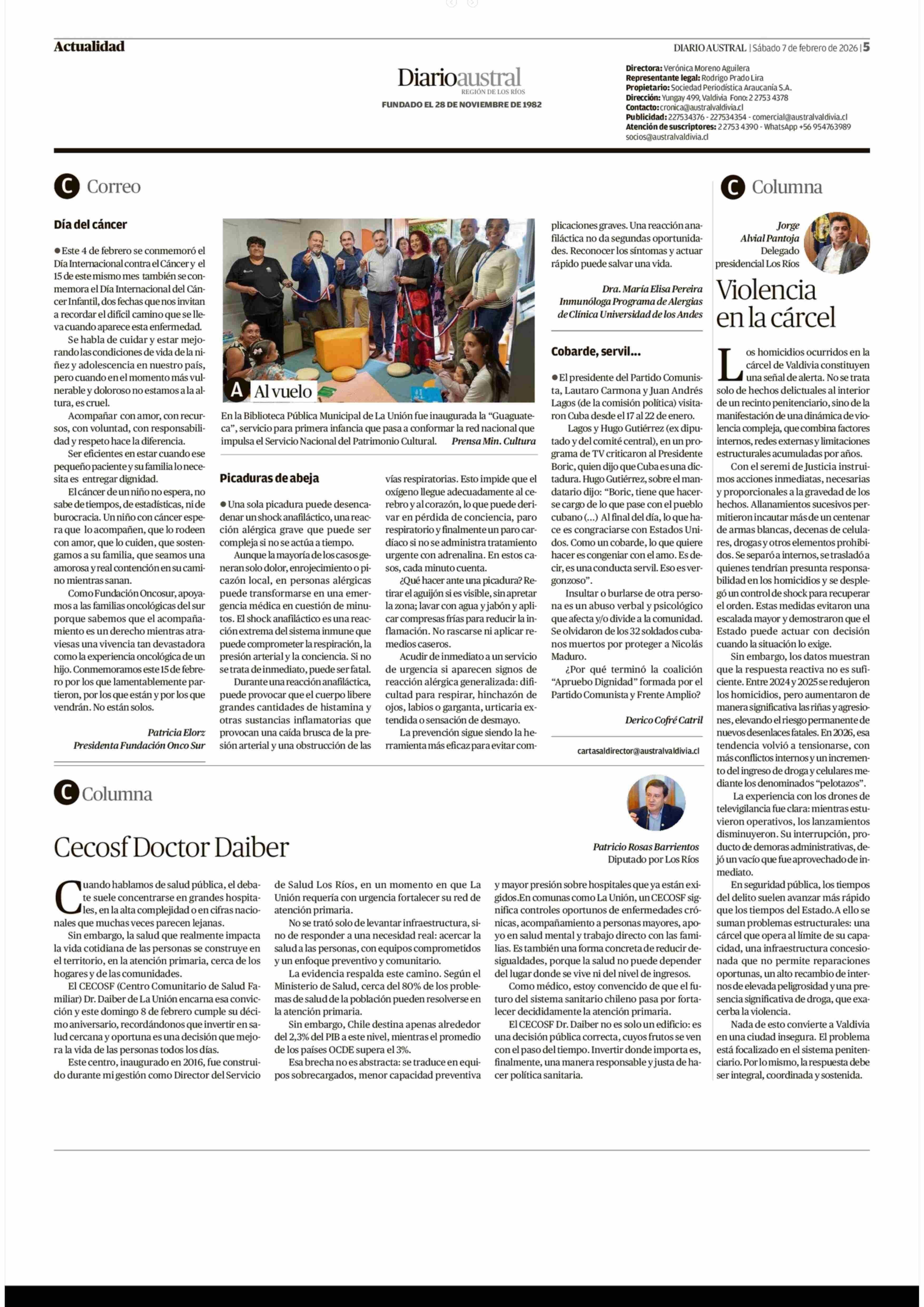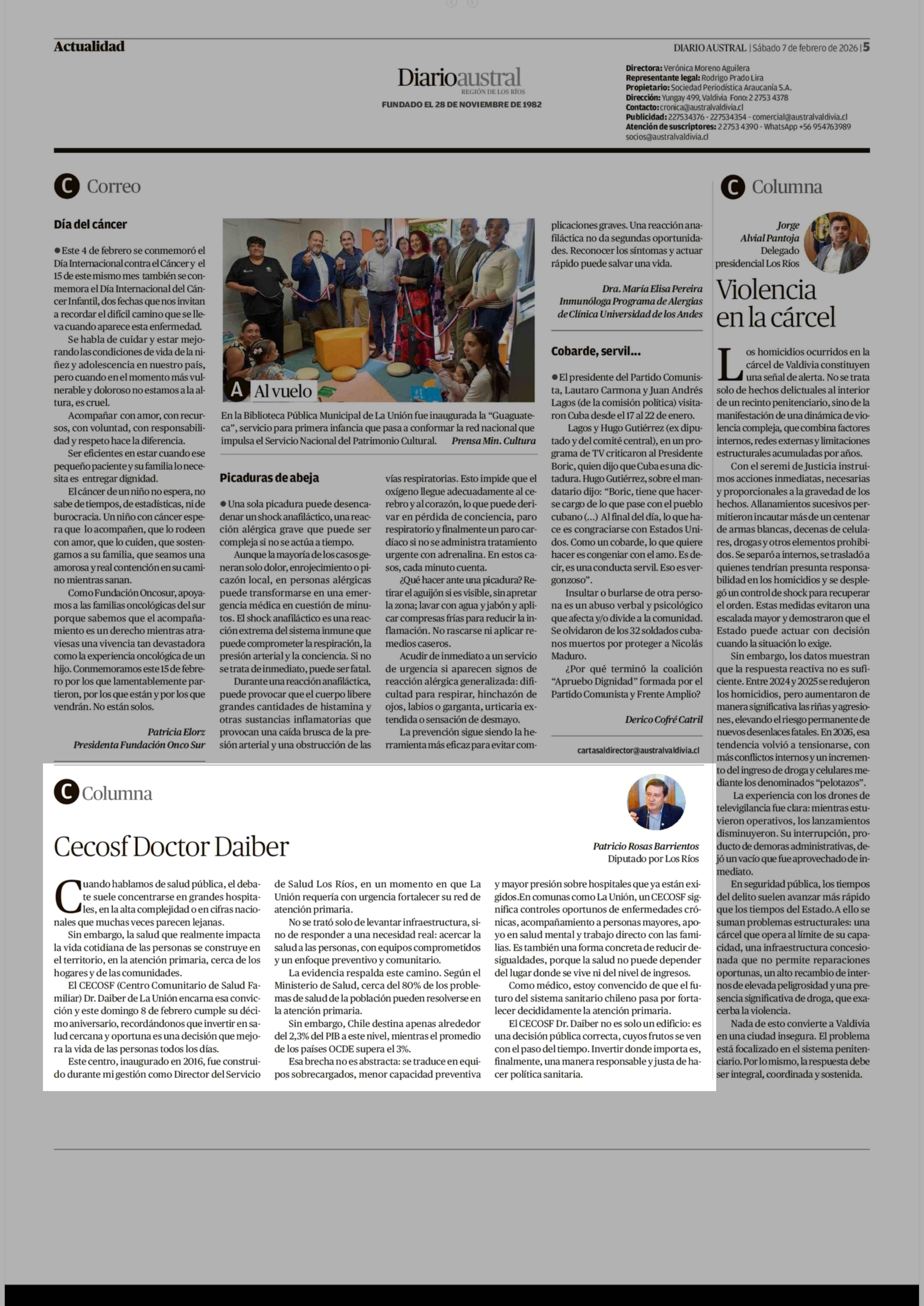 Columnas de Opinión: Cecosf Doctor Daiber 07-02-2026 Diario Austral Región de Los Ríos |