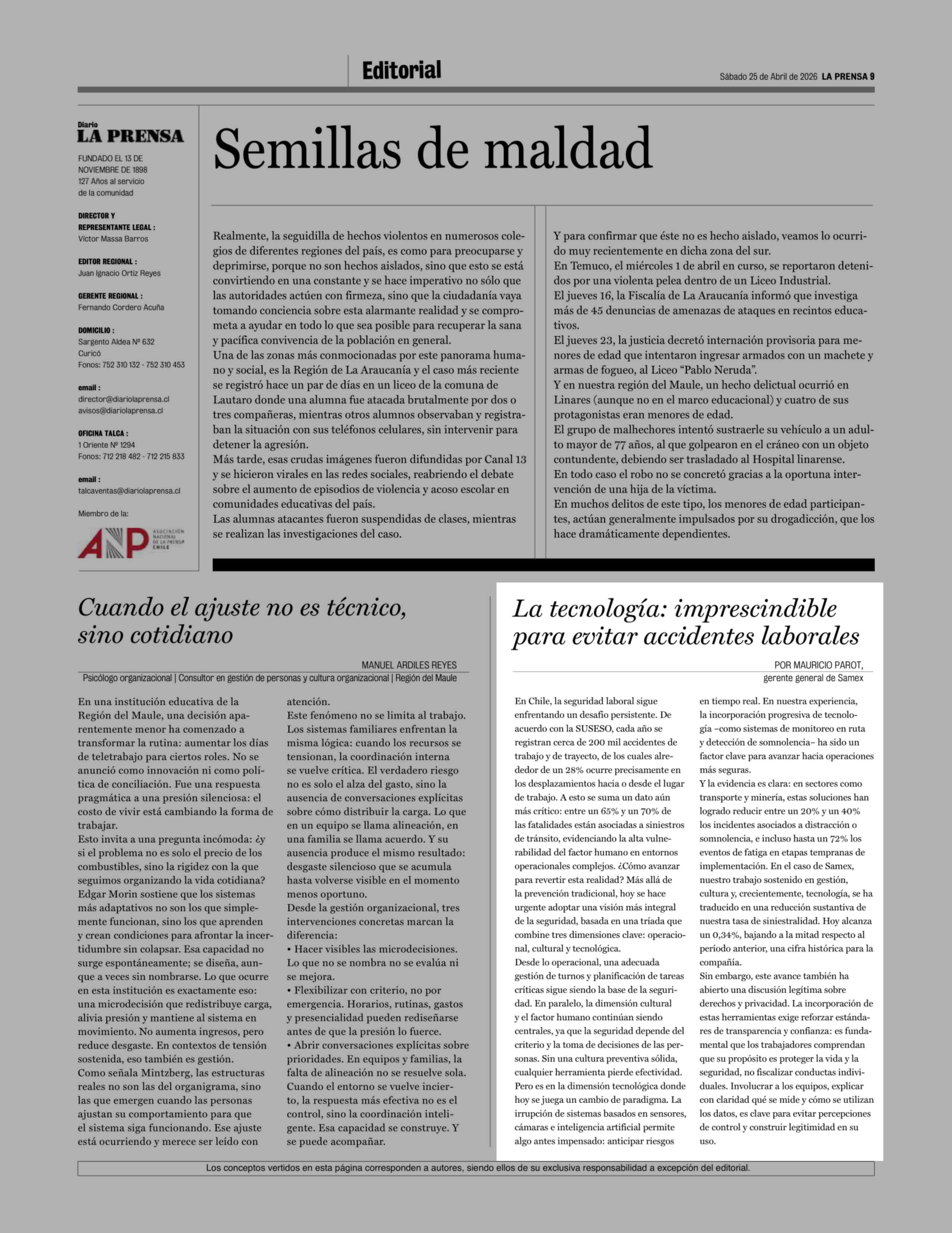 Fecha: 25-04-2026 Sector: Columnas de Opinión Región: Región del Maule