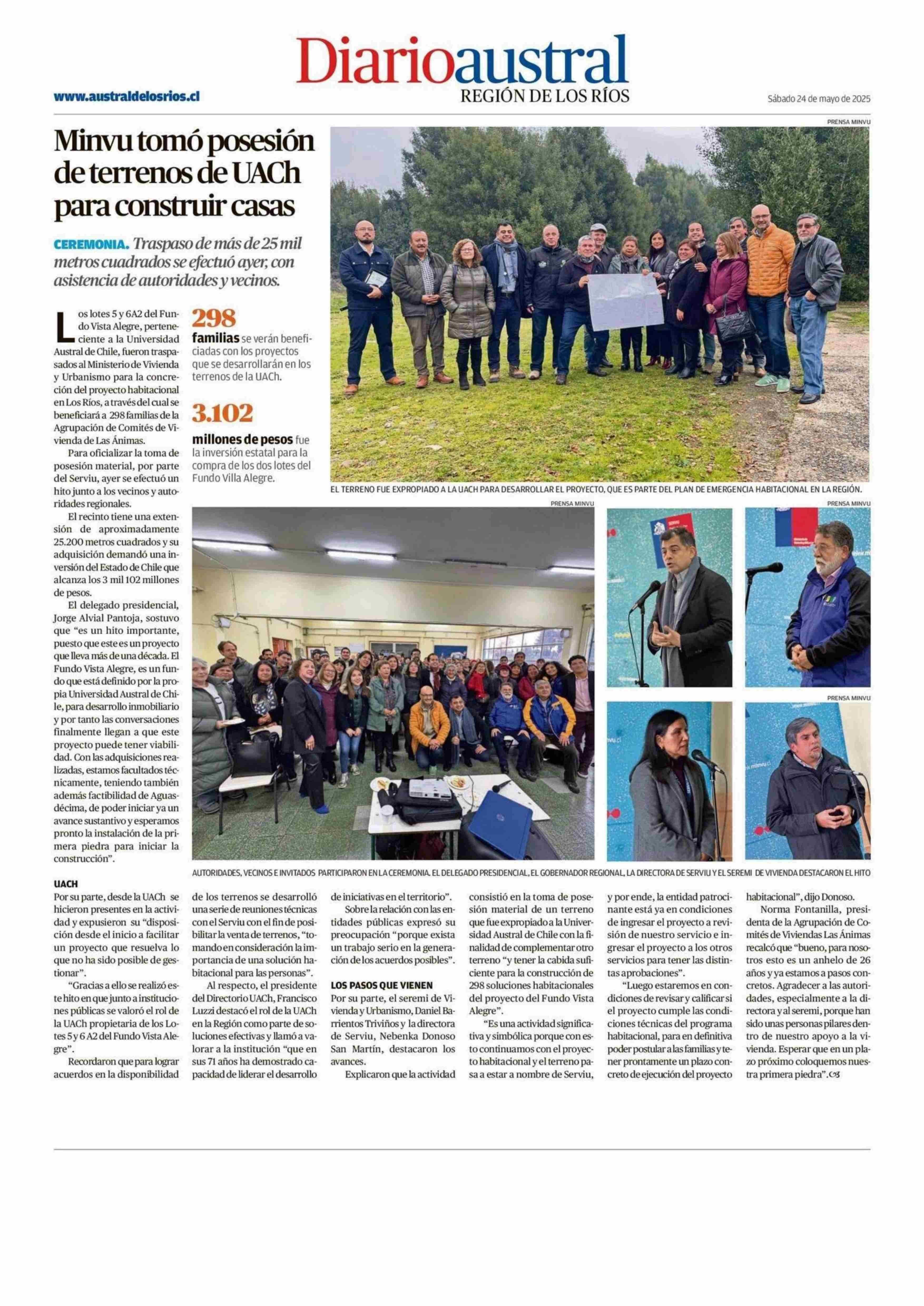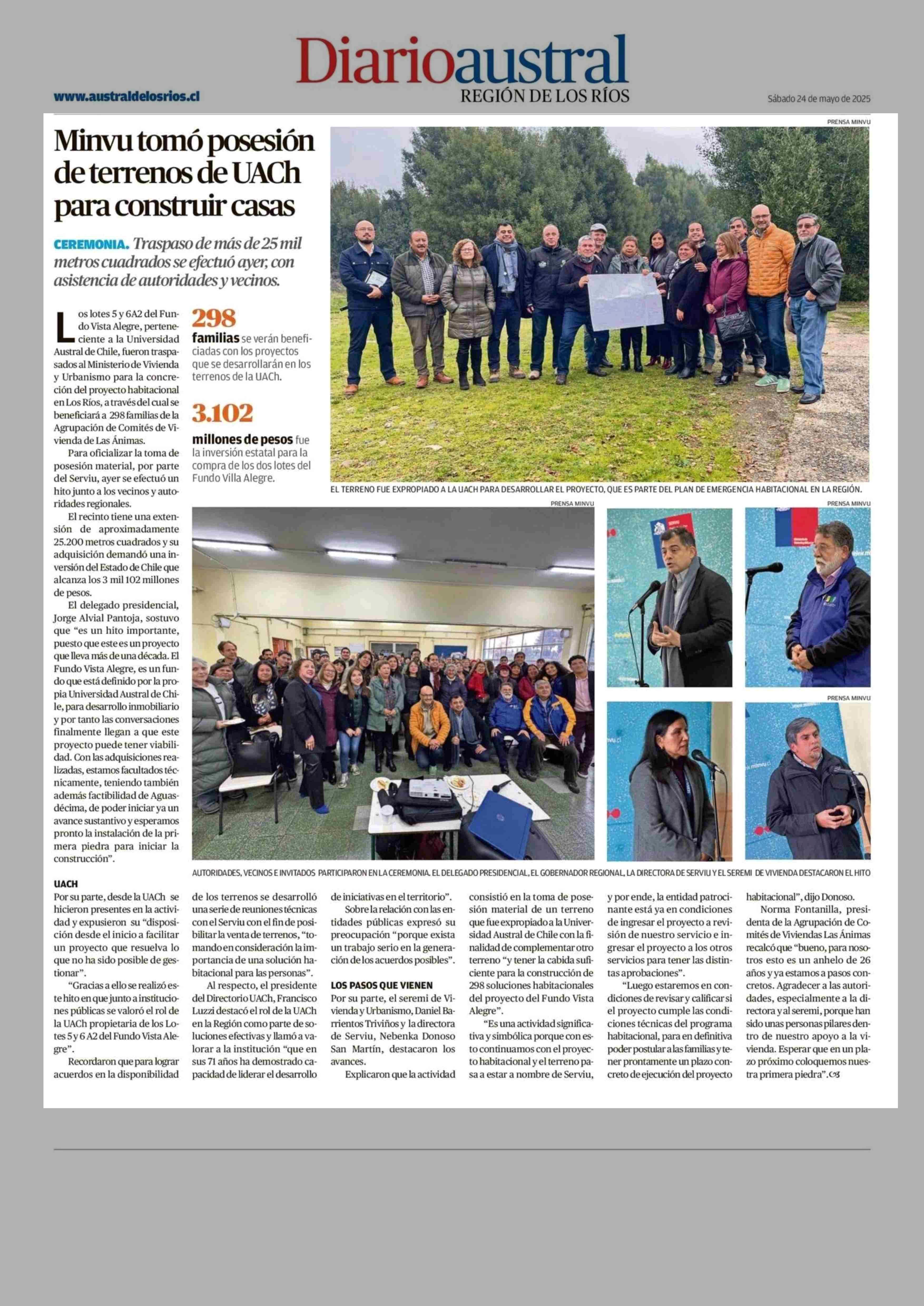 Título: Minvu tomó posesión de terrenos de UACh para construir casas