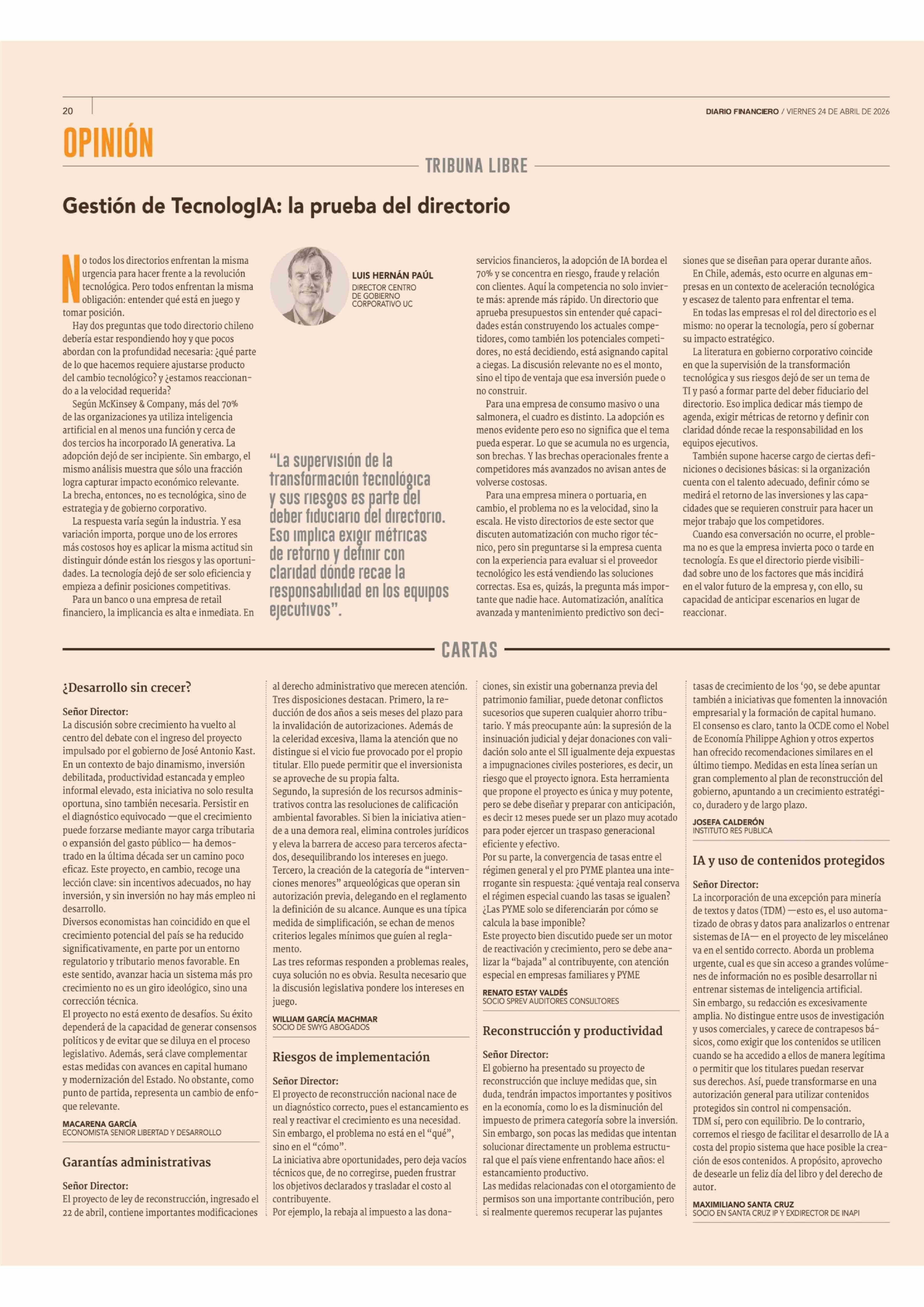 Fecha: 24-04-2026 Sector: Columnas de Opinión Región: Región Metropolitana de Santiago