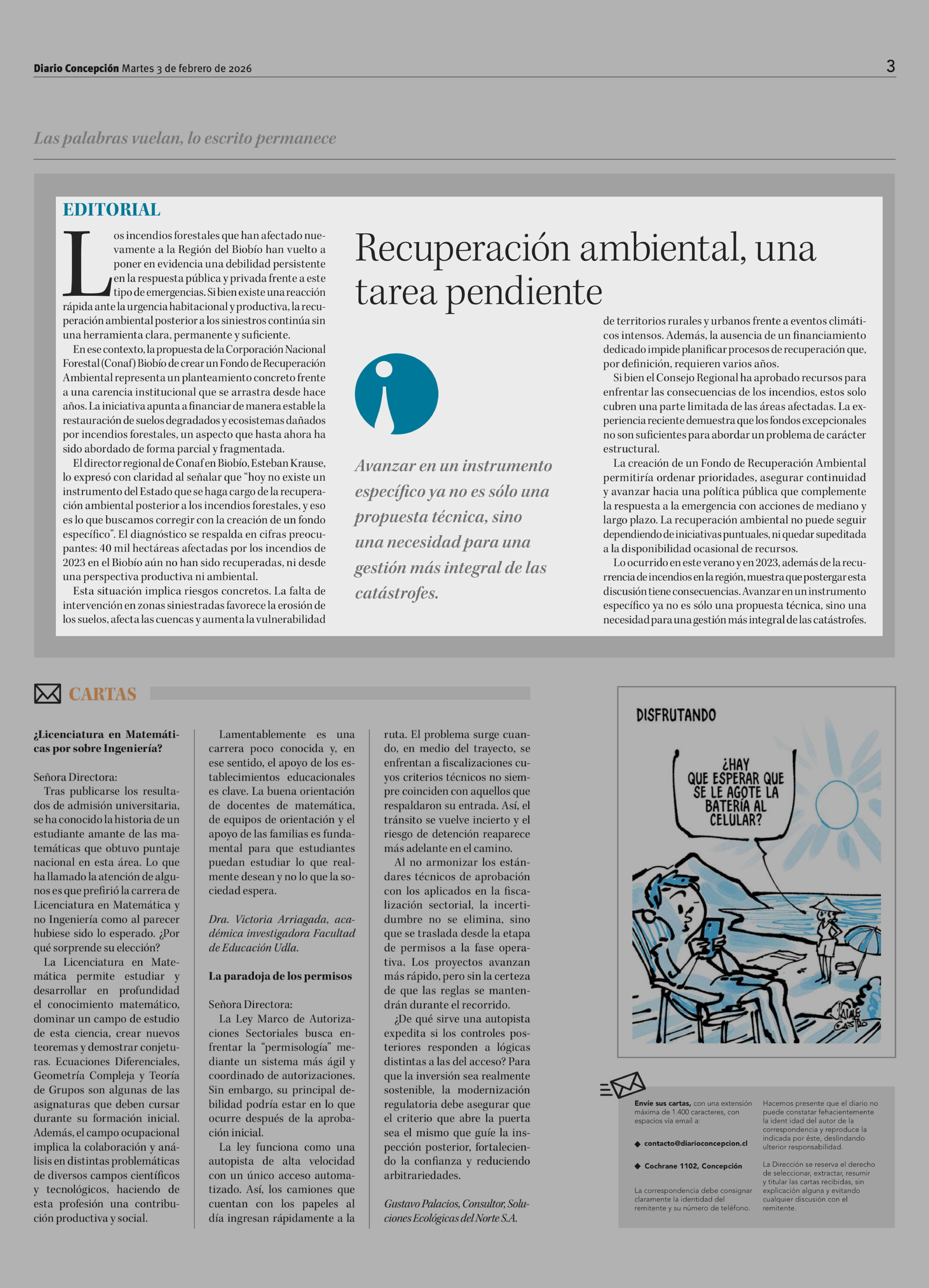Editorial: Recuperación ambiental, una tarea pendiente 03-02-2026 Diario Concepción |