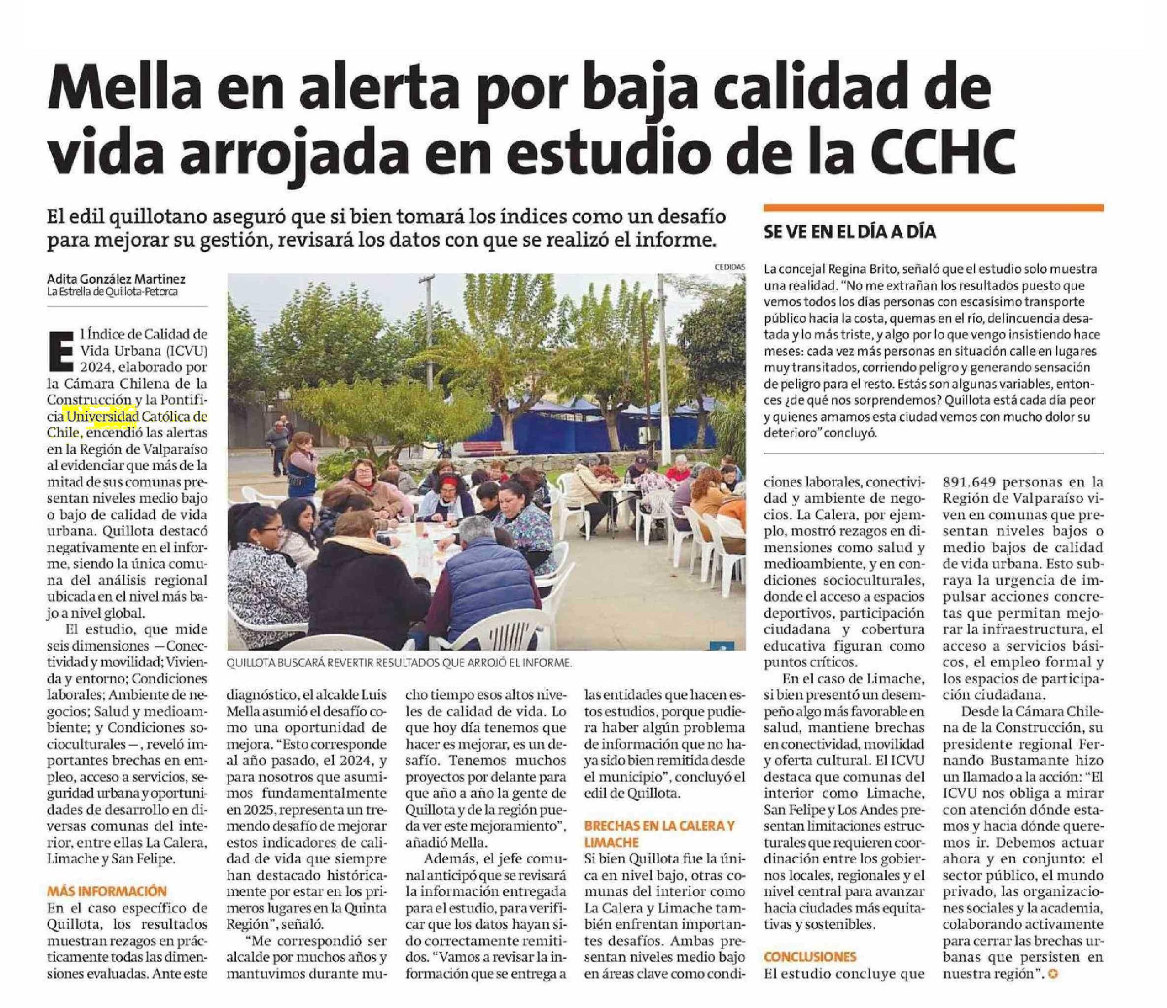 Mella en alerta por baja calidad de vida arrojada en estudio de la CCHC 02-05-2025 La Estrella de Quillota |