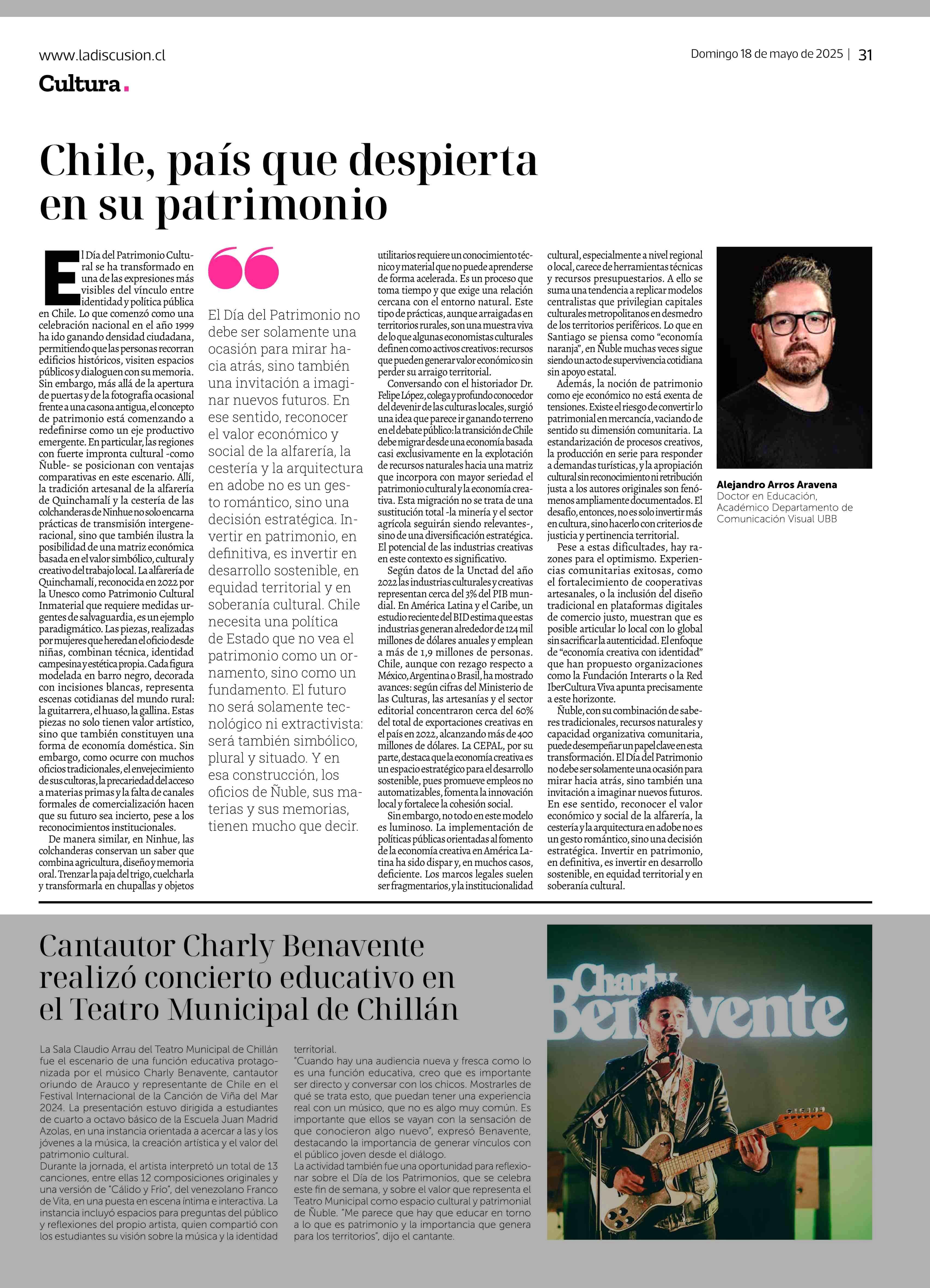 COLUMNAS DE OPINIÓN: Chile, país que despierta en su patrimonio 25-05-2025 La Discusión |