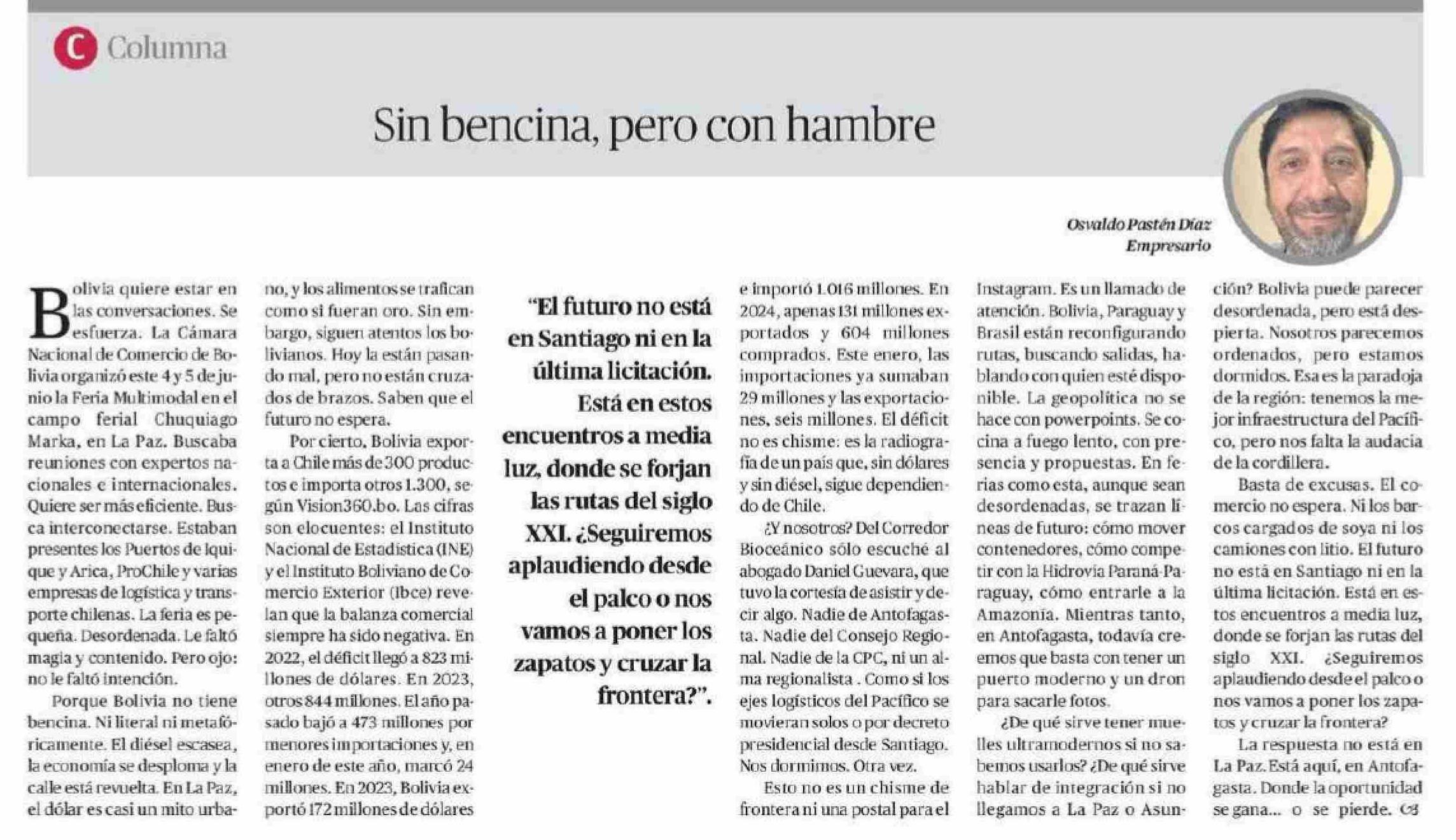Columnas de Opinión: Sin bencina, pero con hambre 08-06-2025 El Mercurio de Antofagasta |