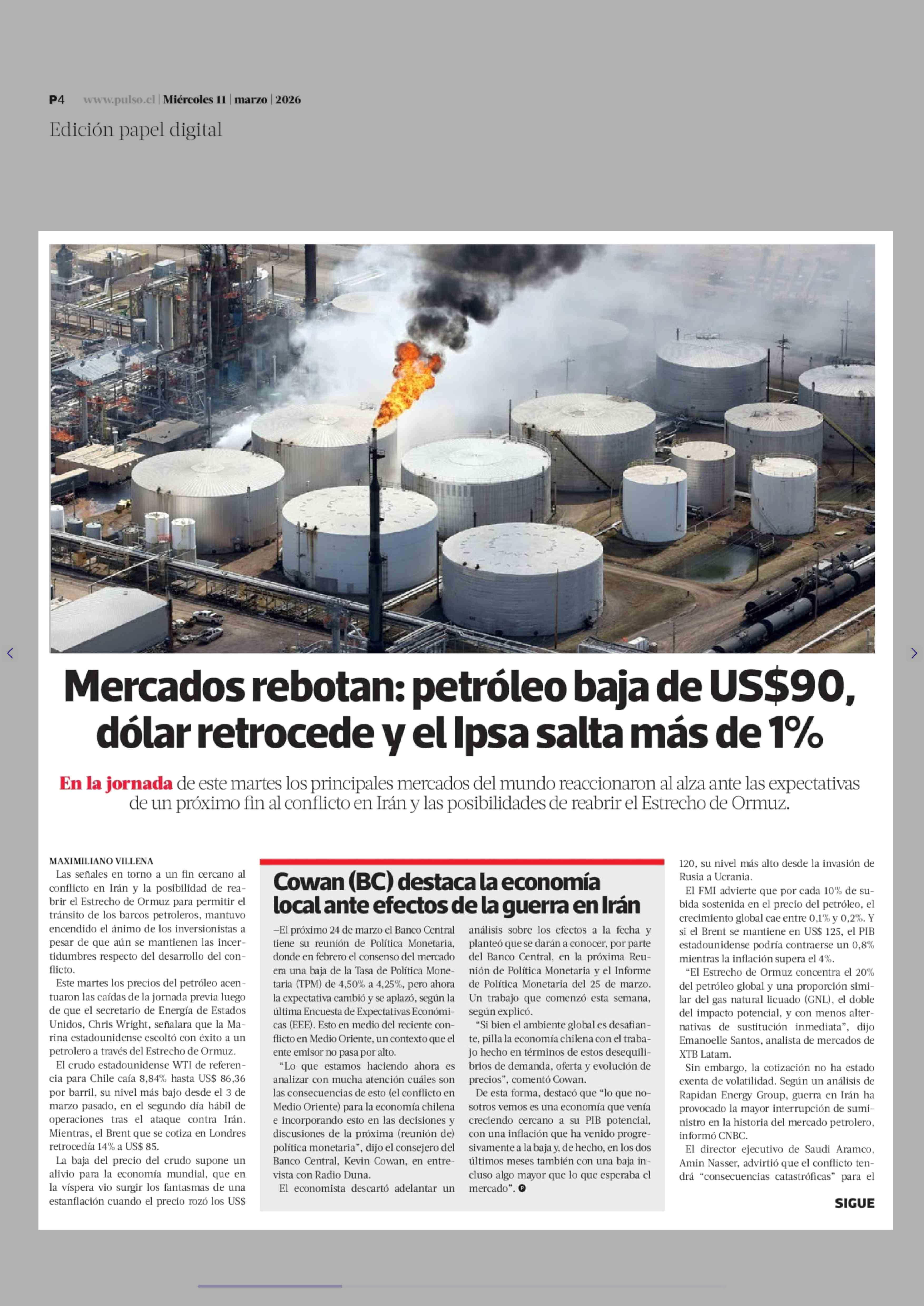 Título: Mercados rebotan: petróleo baja de US$90, dólar retrocede y el Ipsa salta más de 1%
