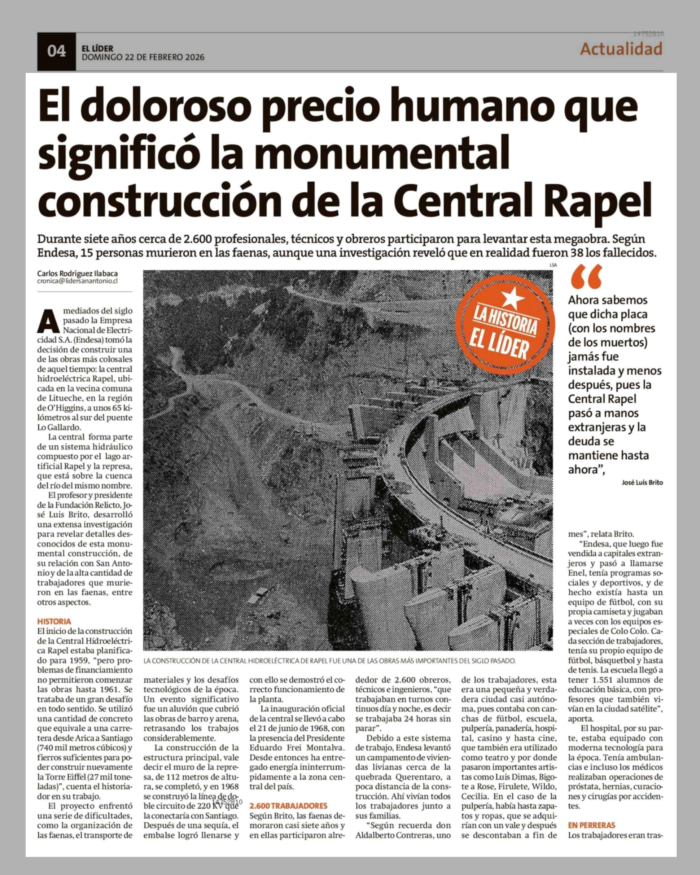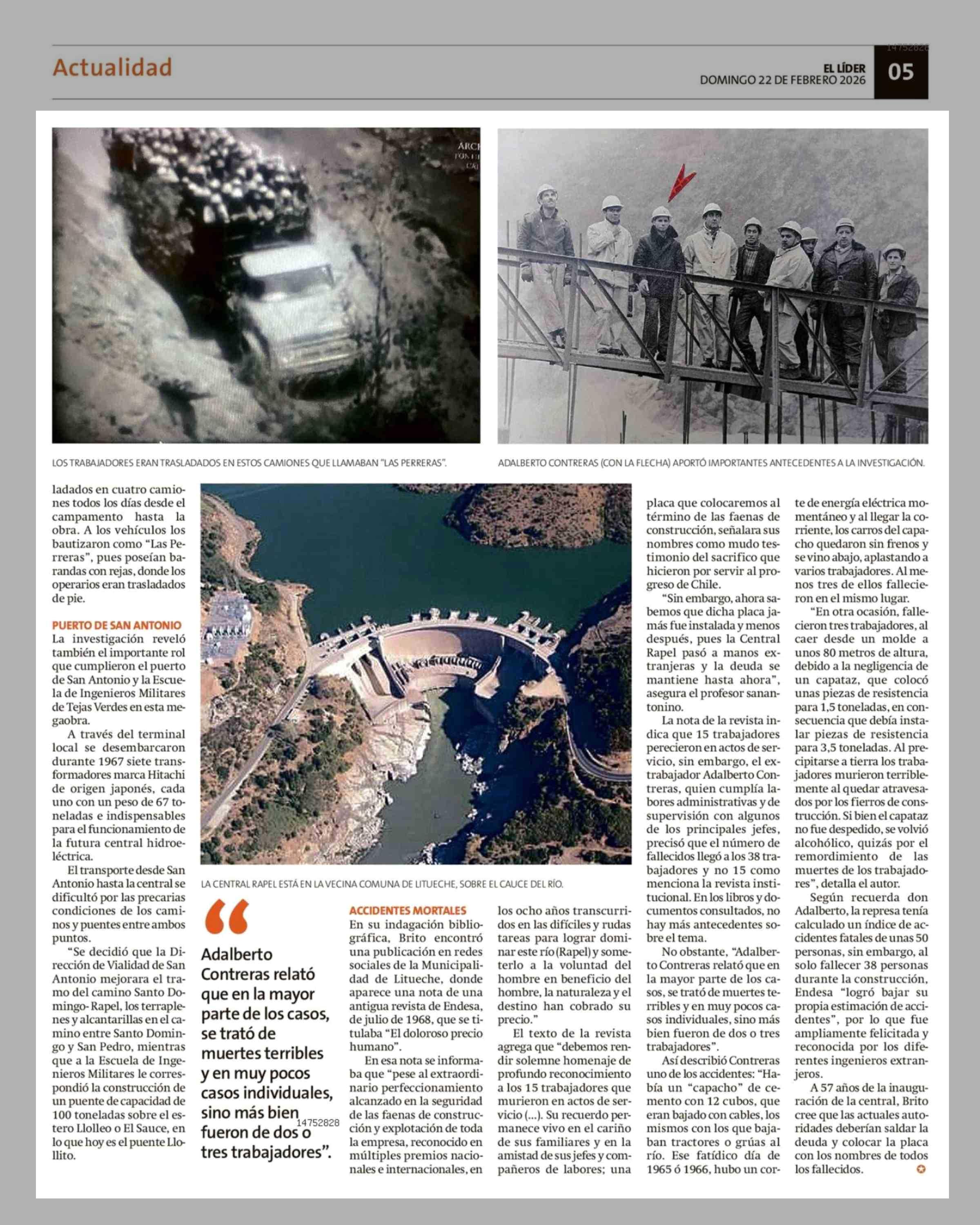 Título: El doloroso precio humano que significó la monumental construcción de la Central Rapel