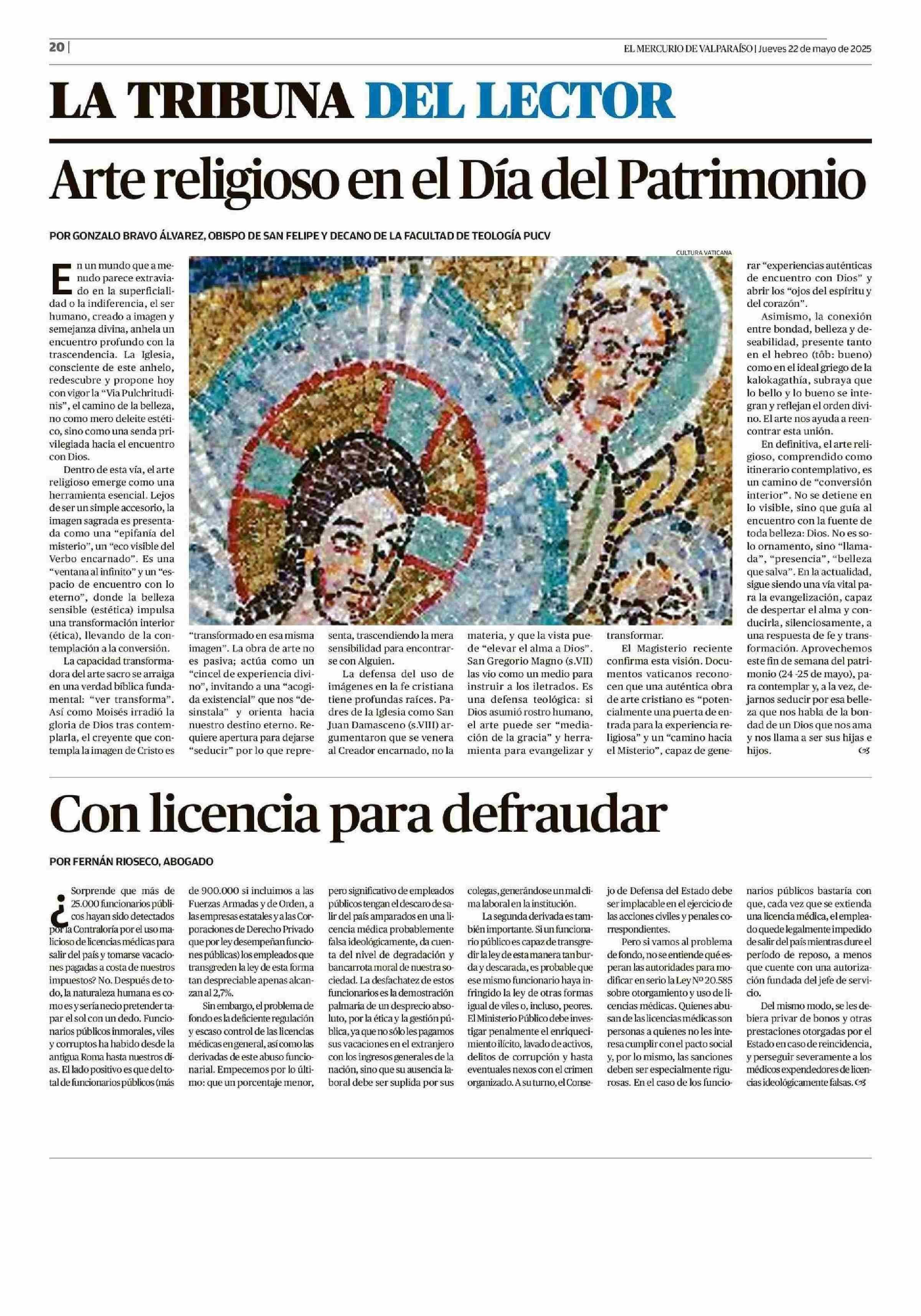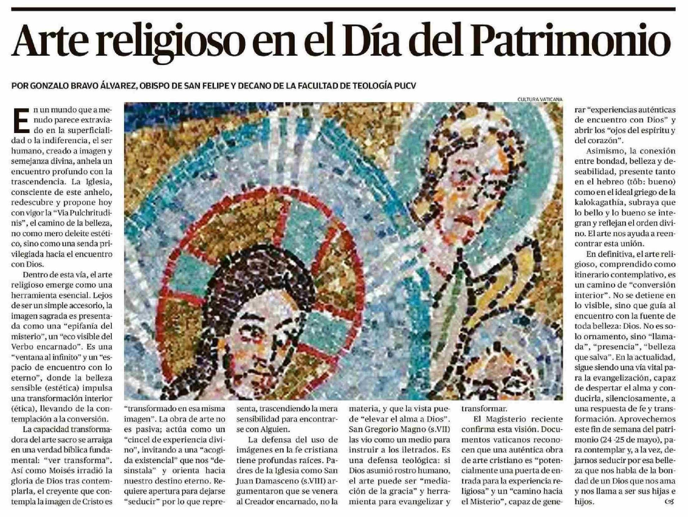 Columnas de Opinión: Arte religioso en el Día del Patrimonio 22-05-2025 El Mercurio de Valparaíso |