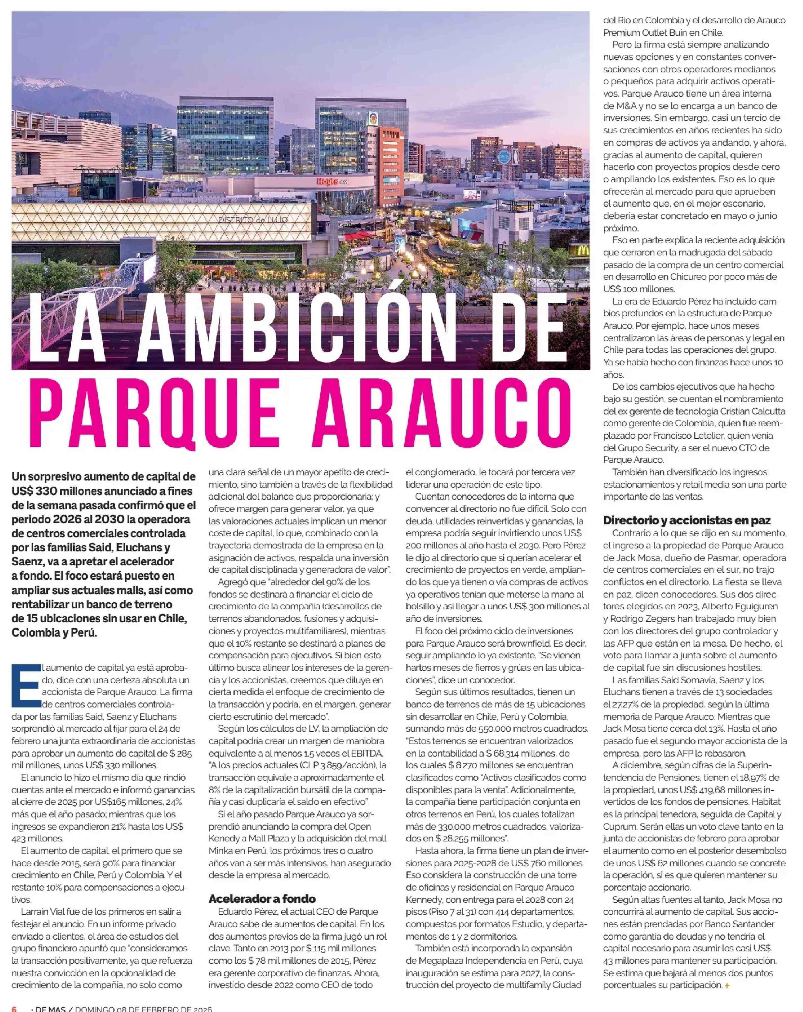 LA AMBICION DE PARQUE ARAUCO 08-02-2026 Diario Financiero |