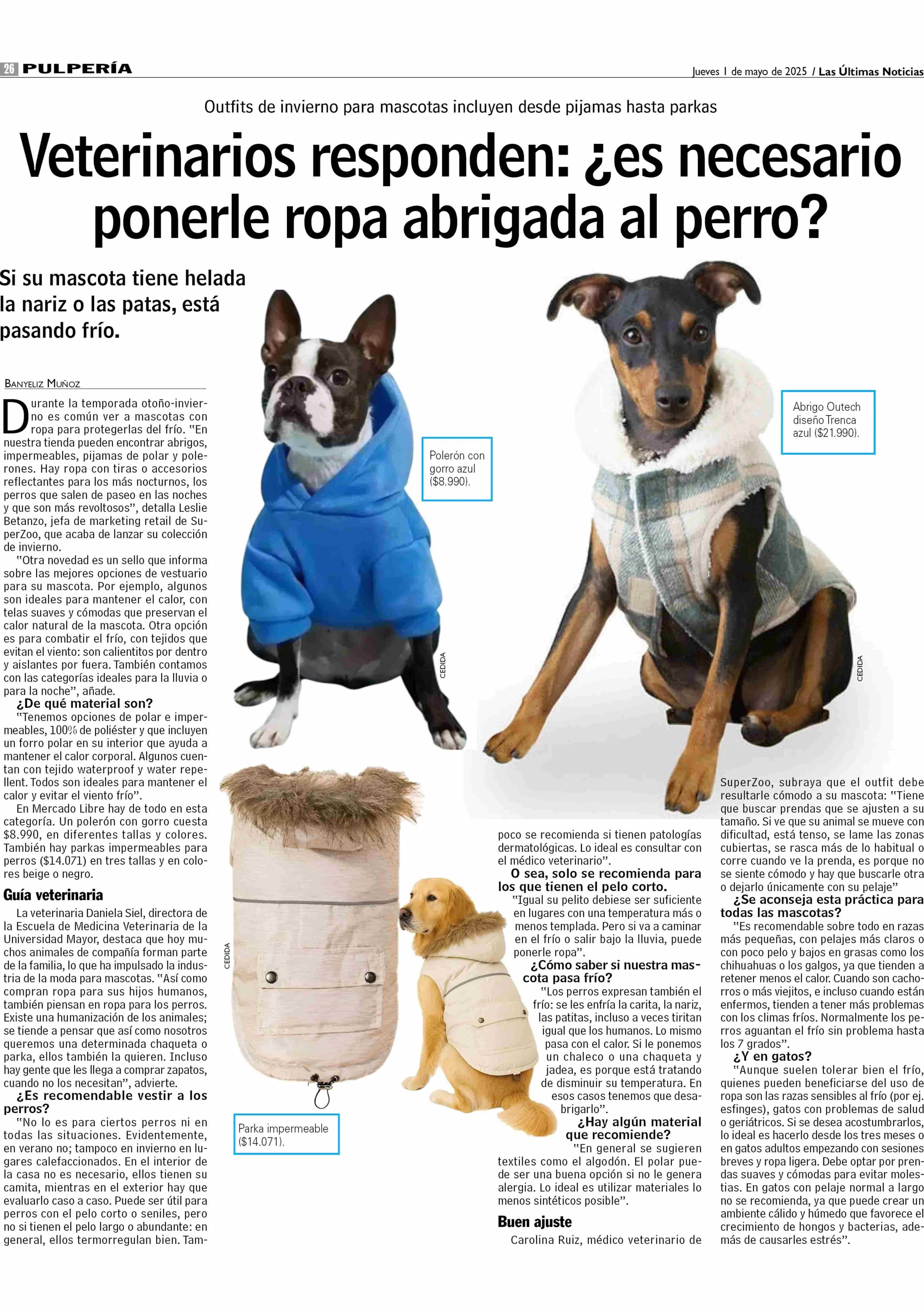 Veterinarios responden: ¿es necesario ponerle ropa abrigada al perro? 01-05-2025 Las Últimas Noticias |