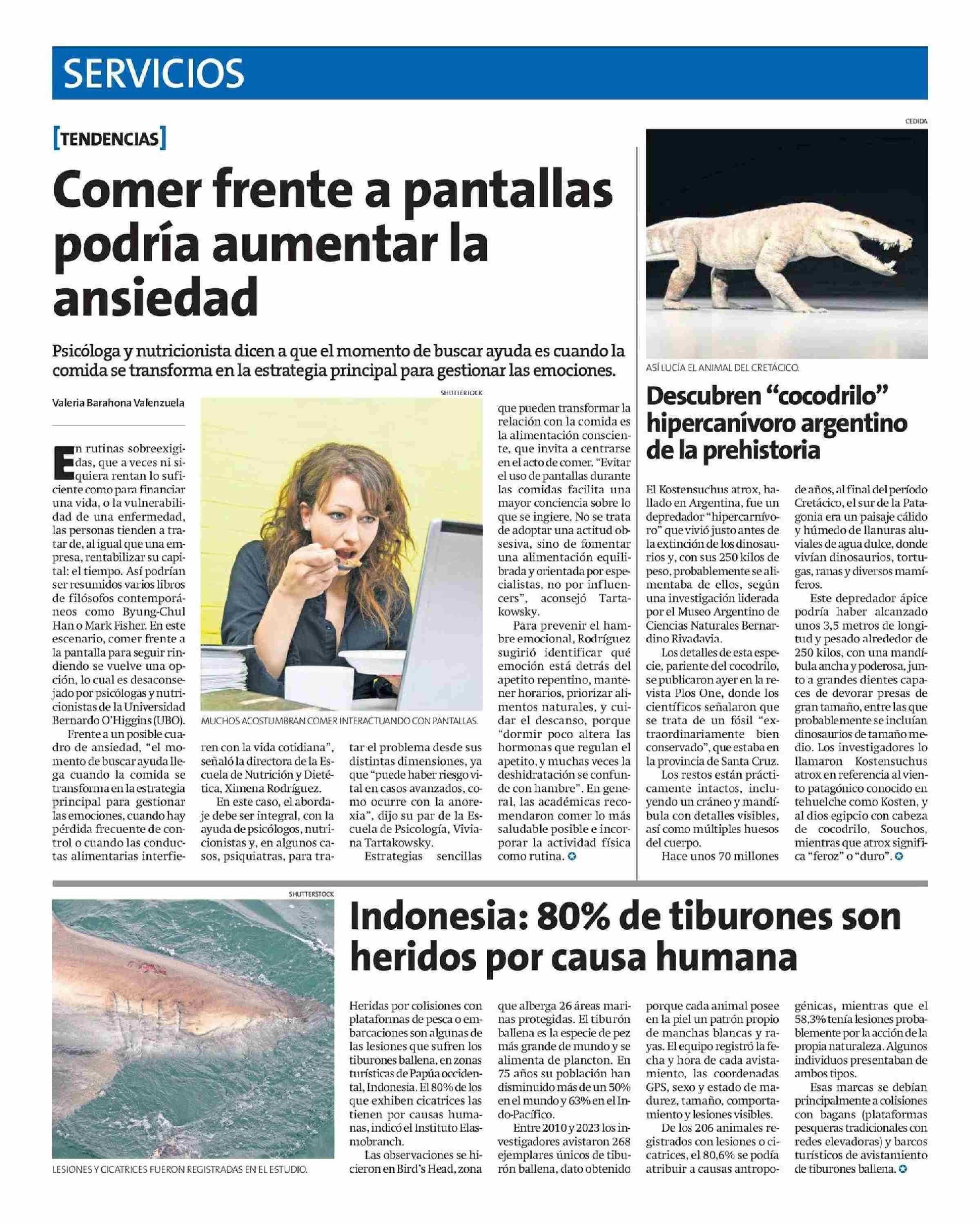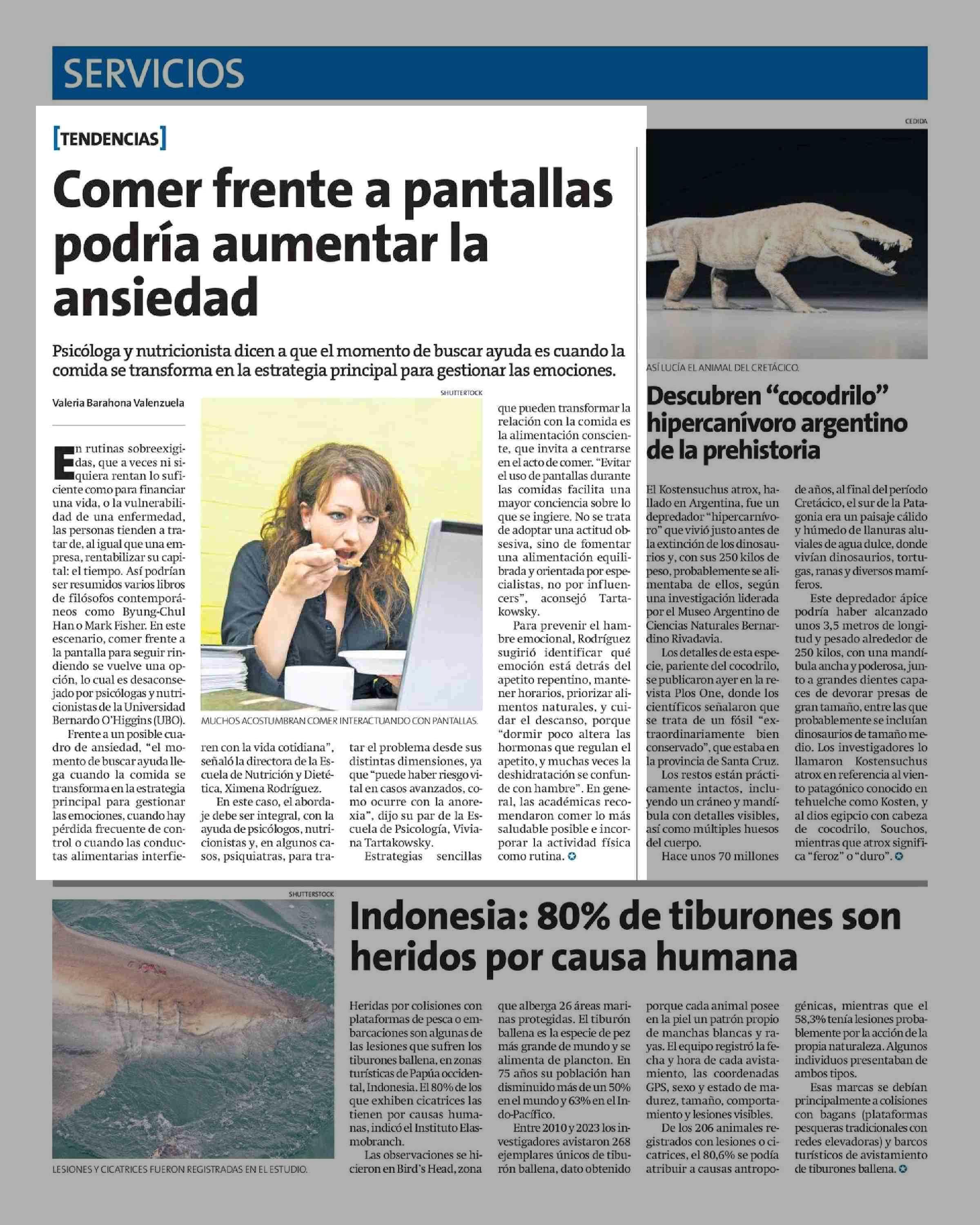 Comer frente a pantallas podría aumentar la ansiedad 30-08-2025 La Estrella de Antofagasta |
