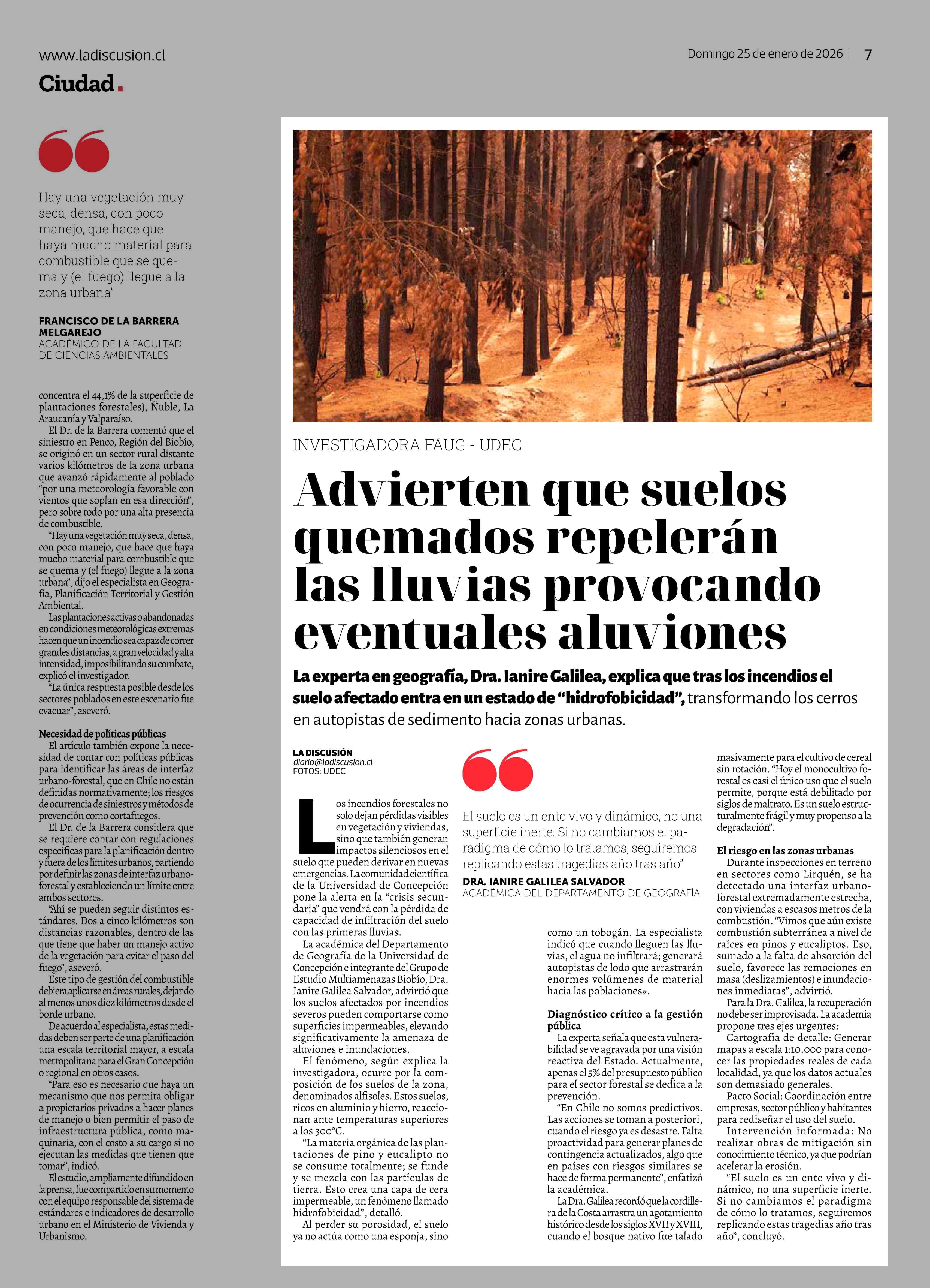 Advierten que suelos quemados repelerán las lluvias provocando eventuales aluviones 25-01-2026 La Discusión |