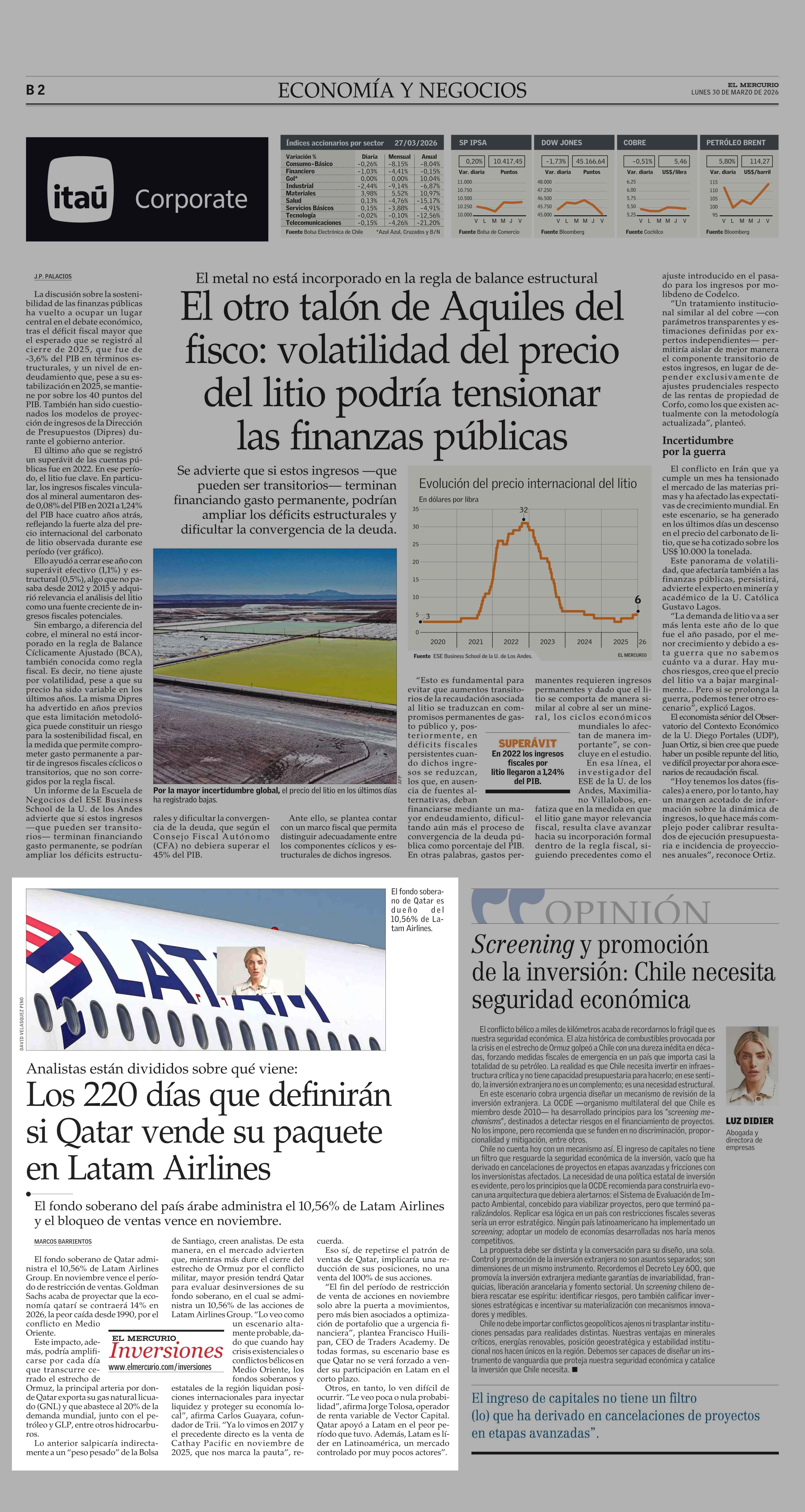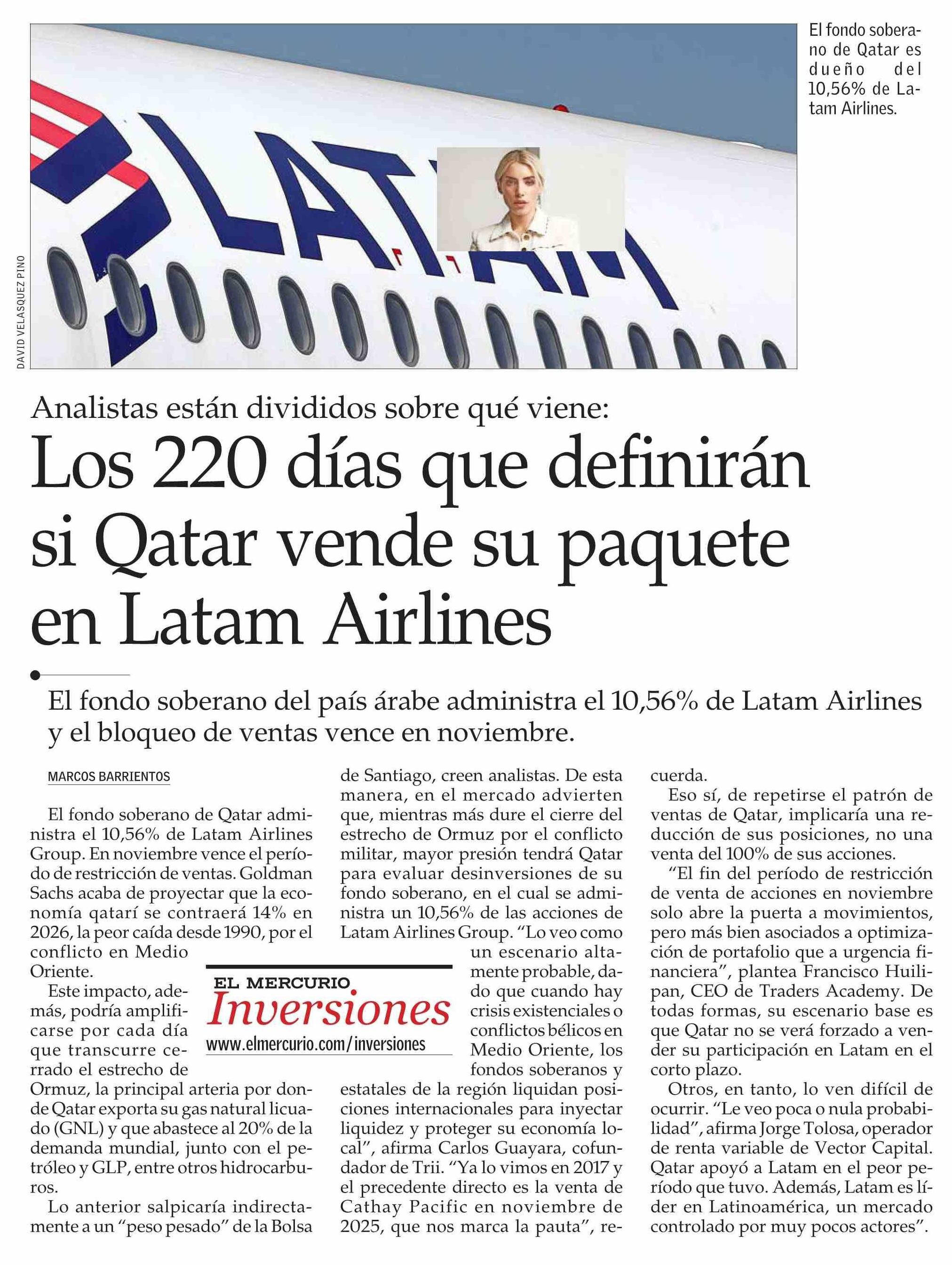 Los 220 días que definirán si Qatar vende su paquete en Latam Airlines 30-03-2026 El Mercurio |