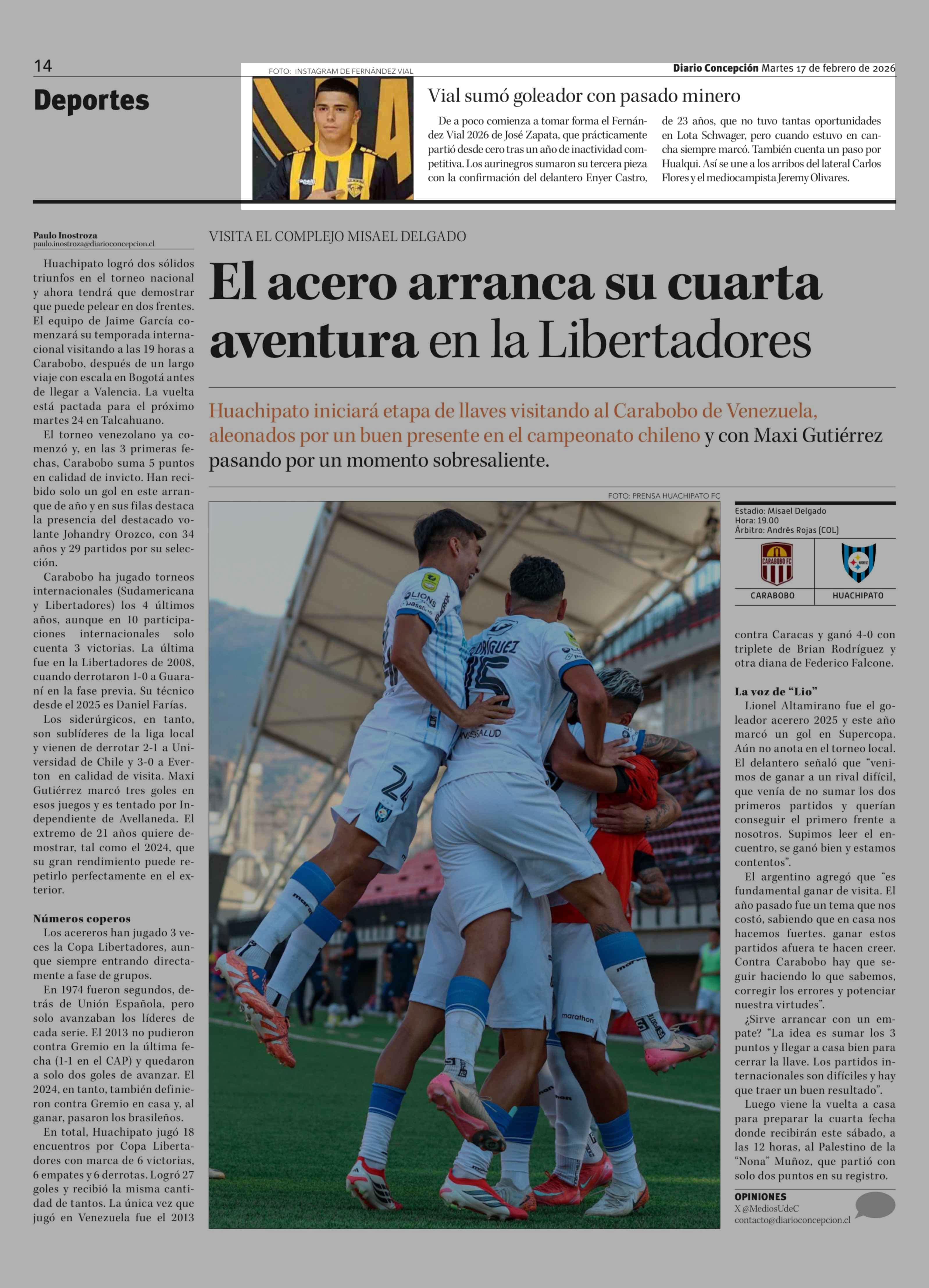Vial sumó goleador con pasado minero 17-02-2026 Diario Concepción |