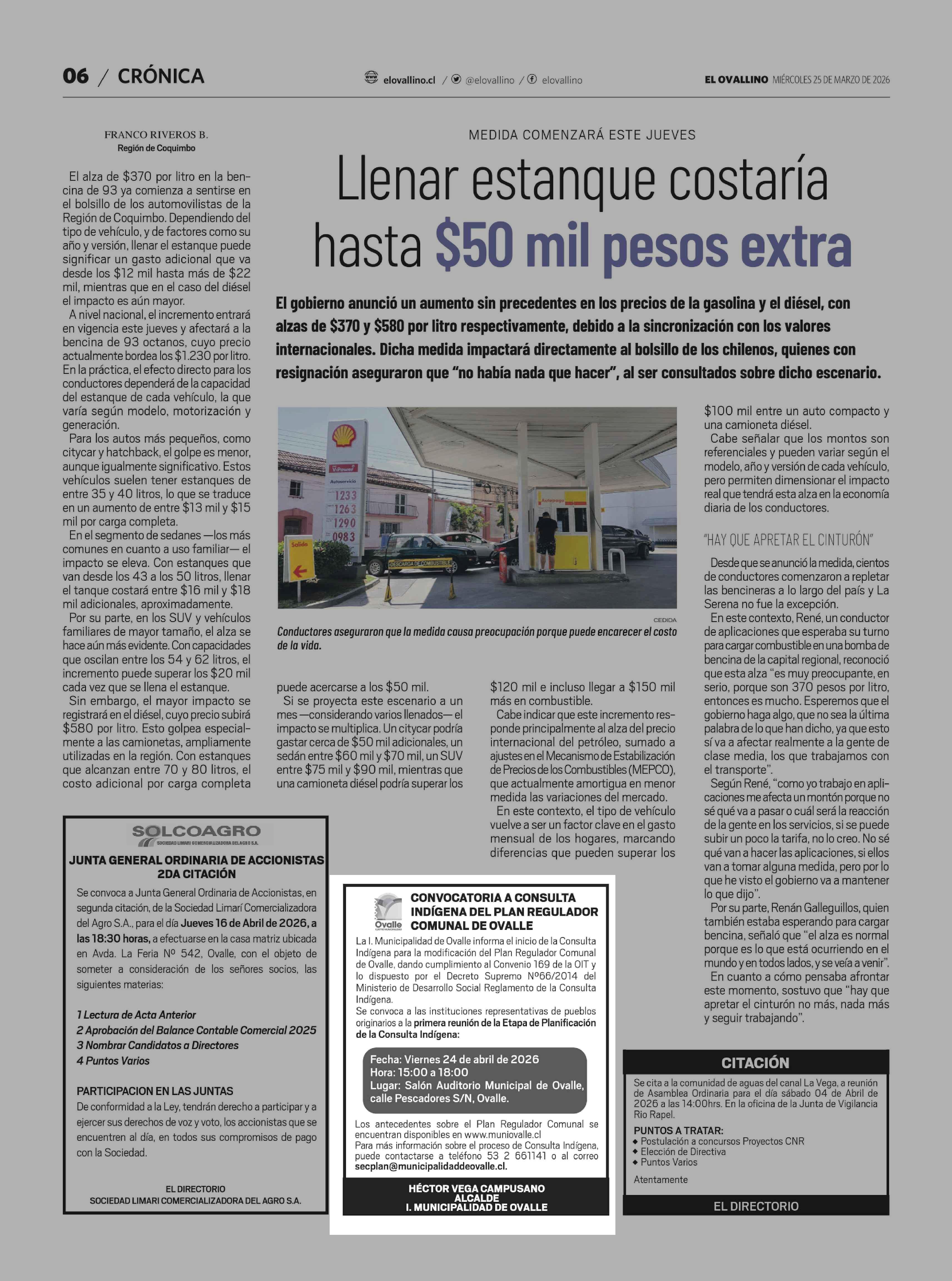 EXTRACTOS: CONVOCATORIA A CONSULTA INDÍGENA DEL PLAN REGULADOR COMUNAL DE OVALLE 25-03-2026 El Ovallino |