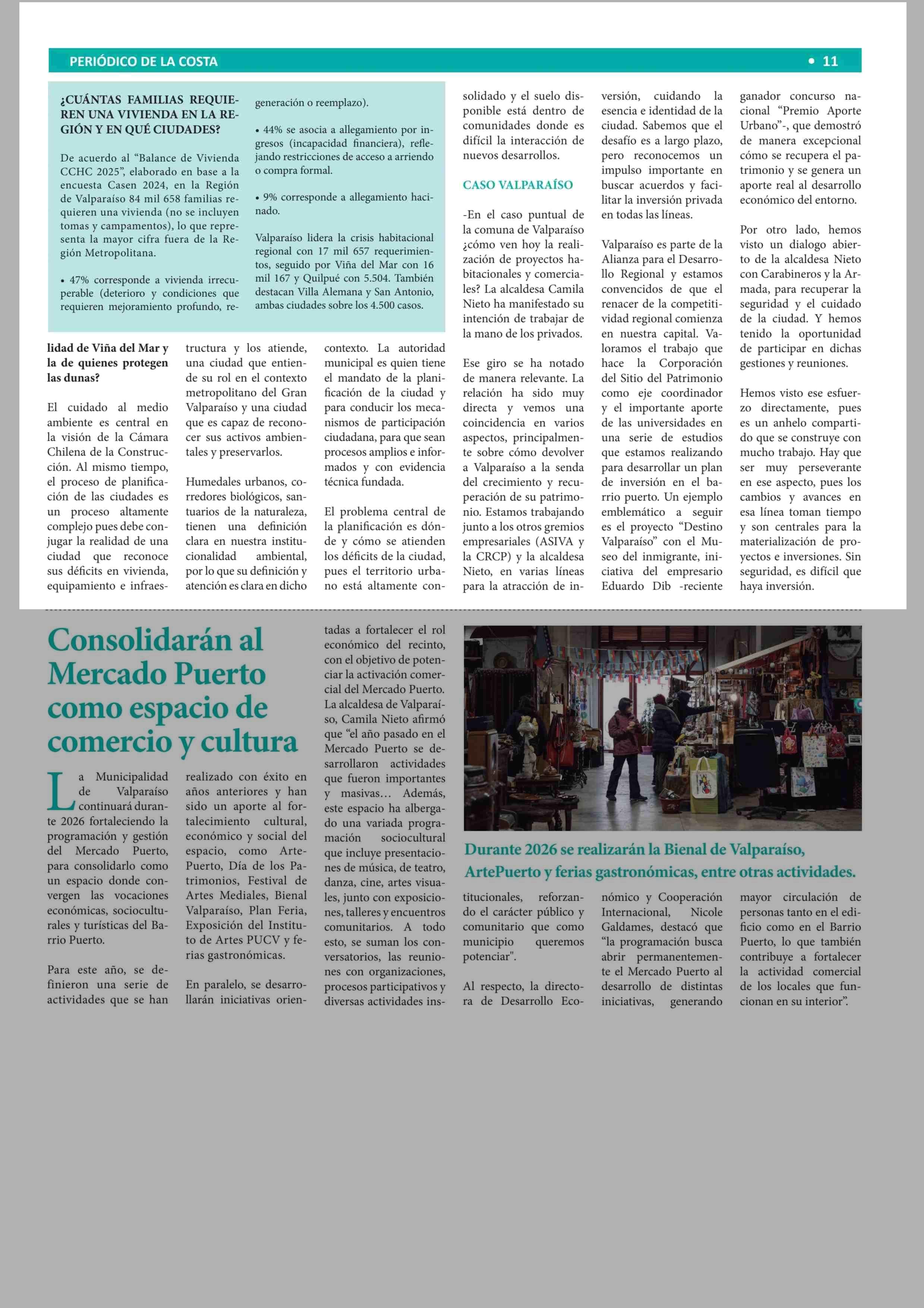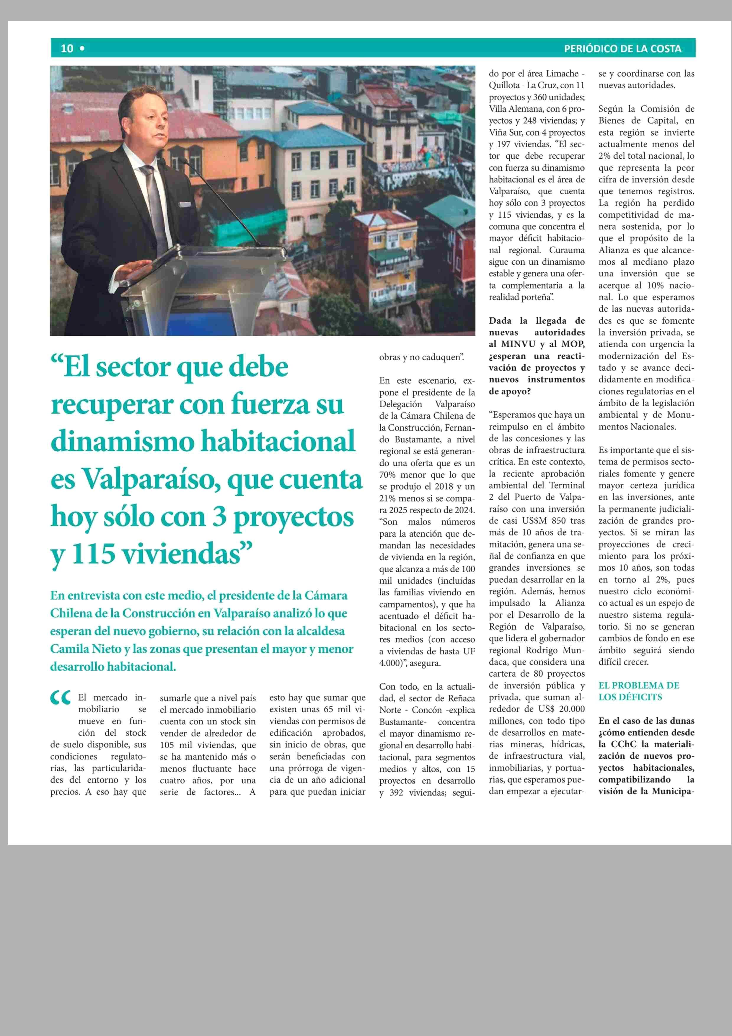 “El sector que debe recuperar con fuerza su dinamismo habitacional es Valparaíso, que cuenta hoy sólo con 3 proyectos y 115 viviendas” 24-03-2026 Periódico de la Costa |